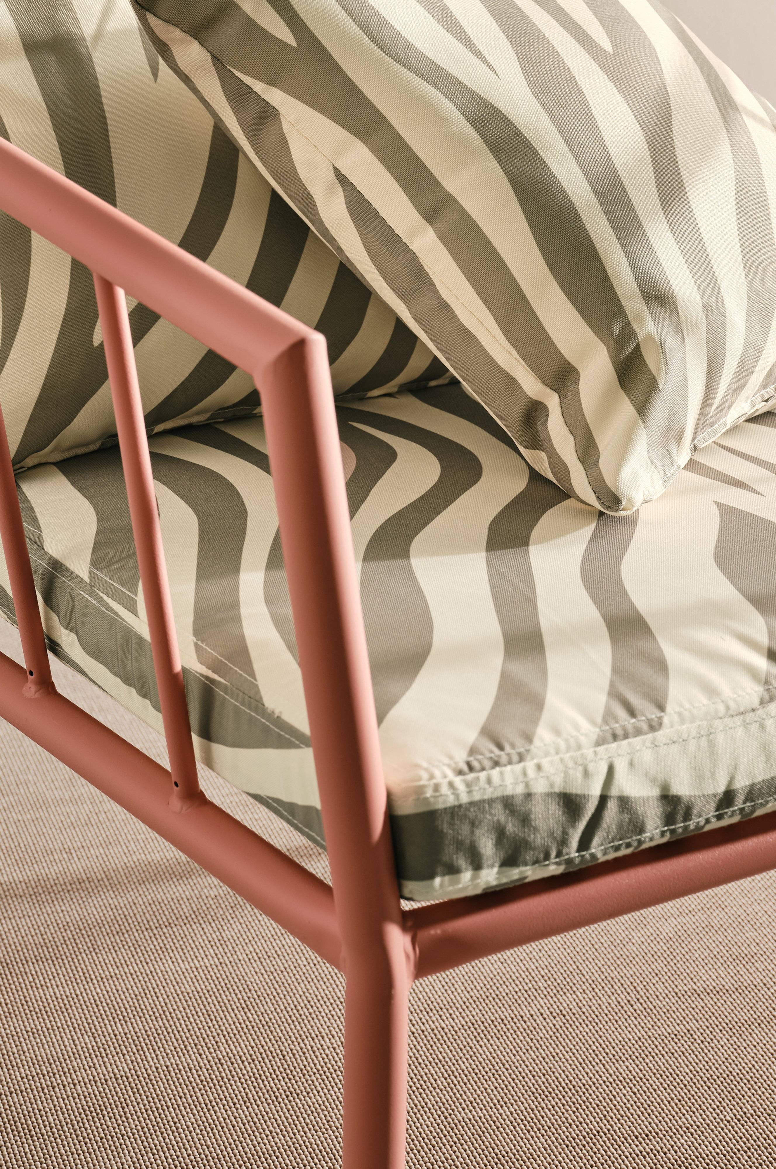 Havetekstiler forvandler dine udendørs siddepladser, og MENTON hynden til loungestolen er ingen undtagelse. Hynden er syet i vandafvisende polyester og giver komfort og stil til enhver have eller altan. Mønstret er designet af Maria Carlberg, og retroprintet tilfører dit rum et stænk af nostalgi. Det praktiske møder det æstetiske takket være et aftageligt betræk med en praktisk lynlås, der gør rengøringen til en leg. Giv dit udendørs ophold et løft med MENTON.