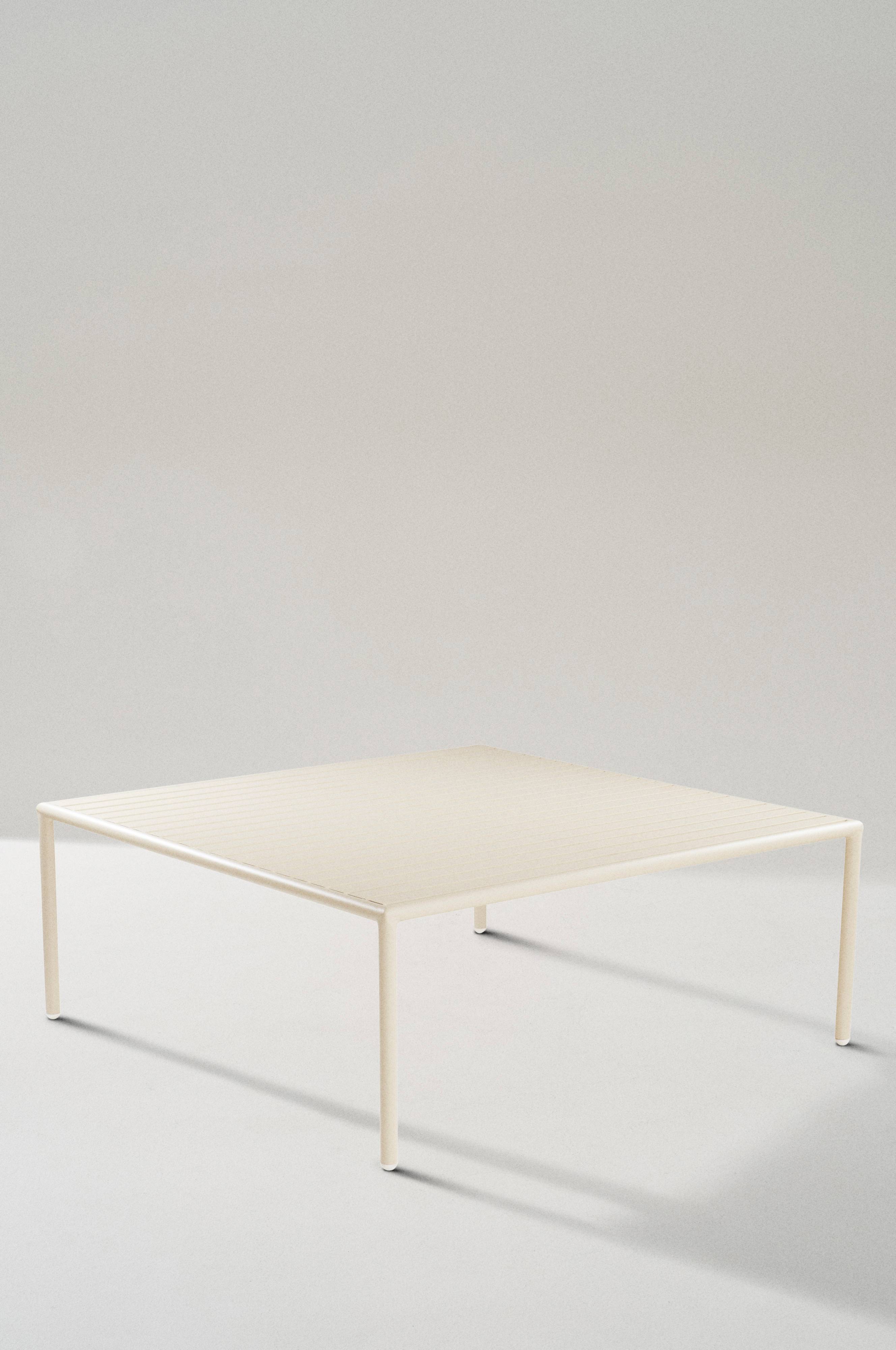 Sofabord af pulverlakeret aluminium med mat overflade, som ikke blænder i solskin. MENTON kan holde til at stå udendørs, og det gør udelivet lettere. Du slipper for at slæbe møbler rundt, når du vil sidde ude. Det er smart og giver den rigtige loungestil. Lav vægt.