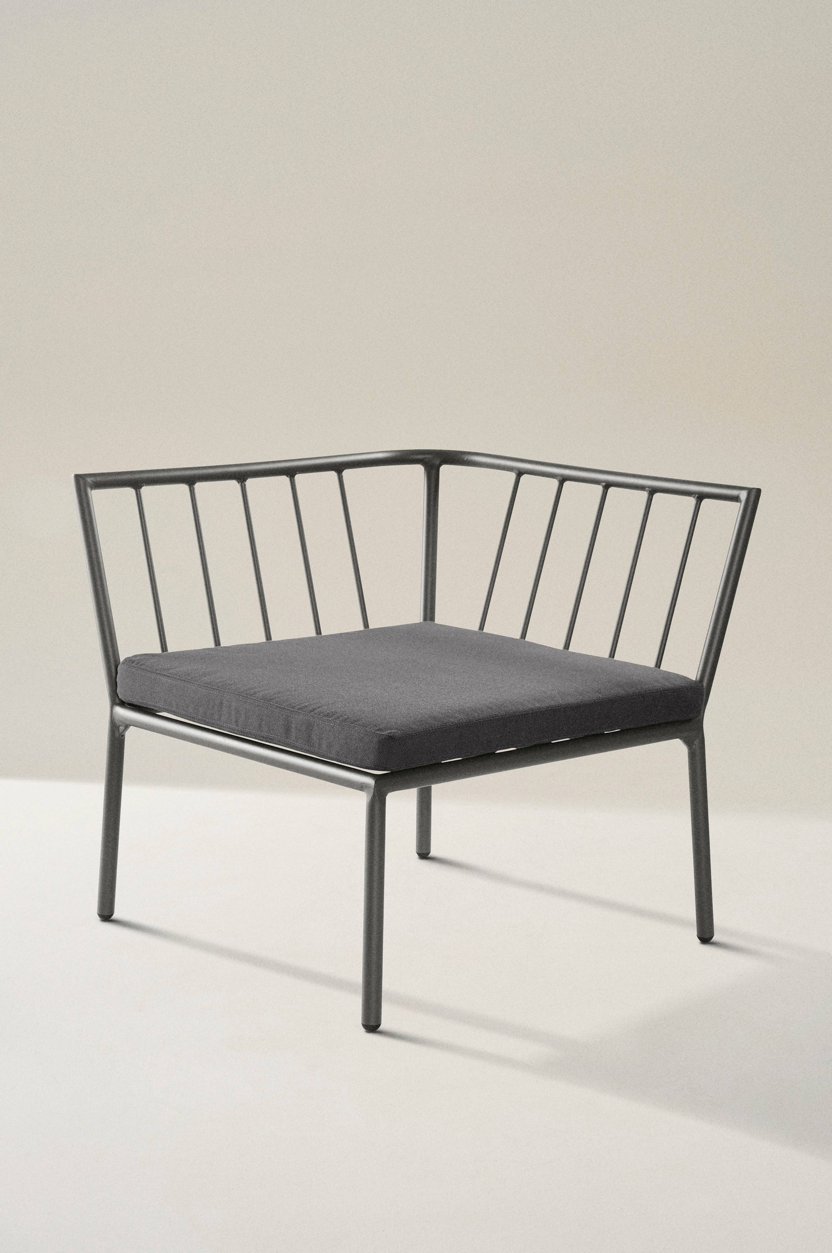 Sofamodul - hjørne, i pulverlakeret aluminium med mat finish. Sædehynde med polyesterbetræk og skumgummipolstring. Det er dejligt at flytte ud på altanen eller i haven, når sommeren er her. MENTON kan stå udendørs, og det gør udelivet lettere. Du behøver ikke at bære, så snart du vil sidde udenfor. Sofamodulet kan bruges som et hjørne, når du bygger en hjørnesofa sammen med sofamodulet uden stelstøtte. Men det er også velegnet som en individuel lænestol. Sofamodulet er pænt og har en behagelig sædedybde, og den lave sædehøjde giver den rette loungefølelse. Sædehynden er inkluderet, og hjørnet bliver ekstra flot, hvis du supplerer med dejlige puder langs ryglænet. Solide farver og mønstre giver mulighed for sjov variation. Fastgørelseselementer er inkluderet. Lav vægt. MENTON er nem at stable til opbevaring.