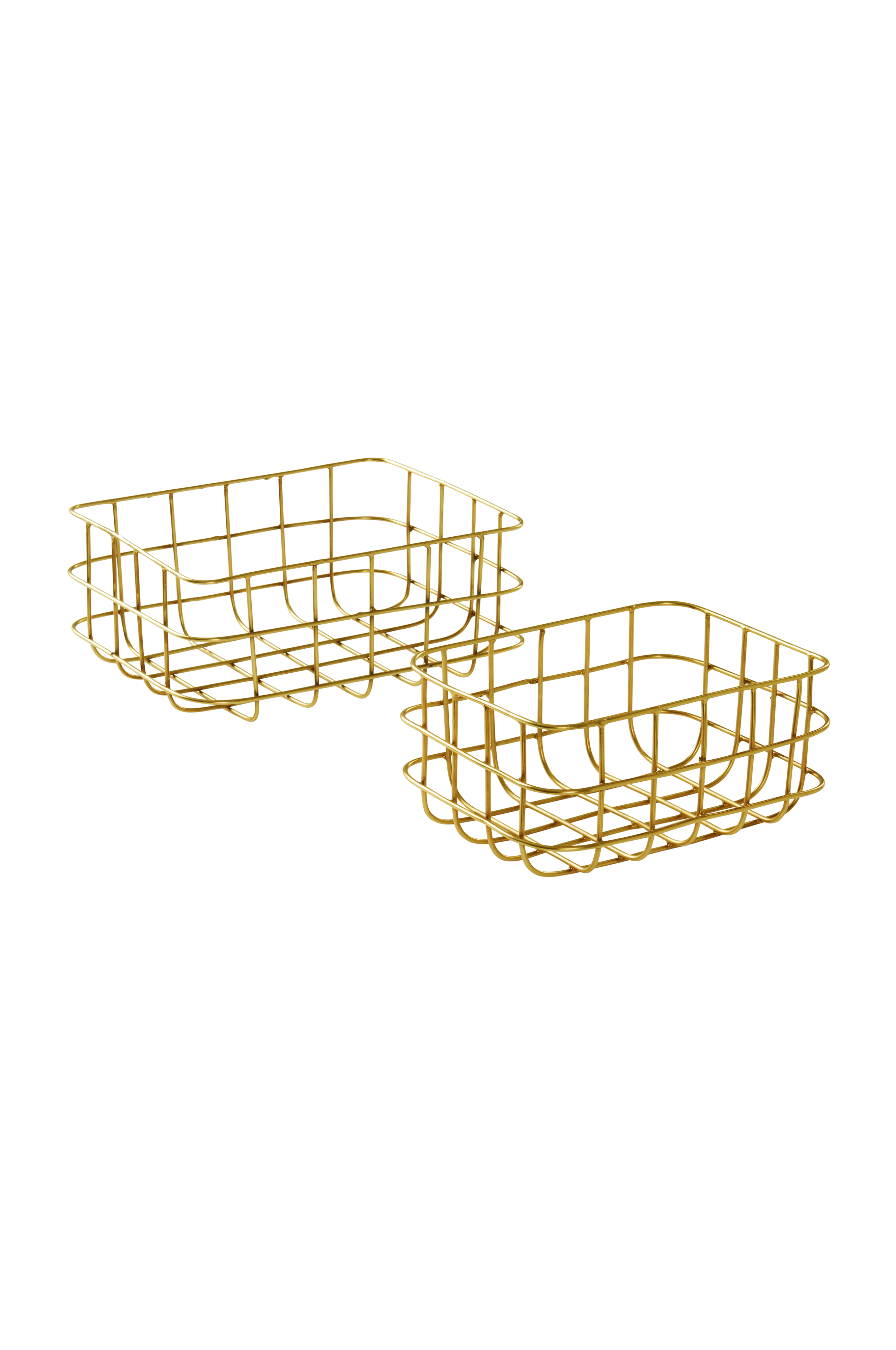 2-pak kurv i metal med antikguldfinish. Trådkurvene har stort brugsområde og passer godt i badeværelset, køkkenet, entréen eller hvor du har brug for praktisk opbevaring. Enkel og stilren model i fin kvalitet.