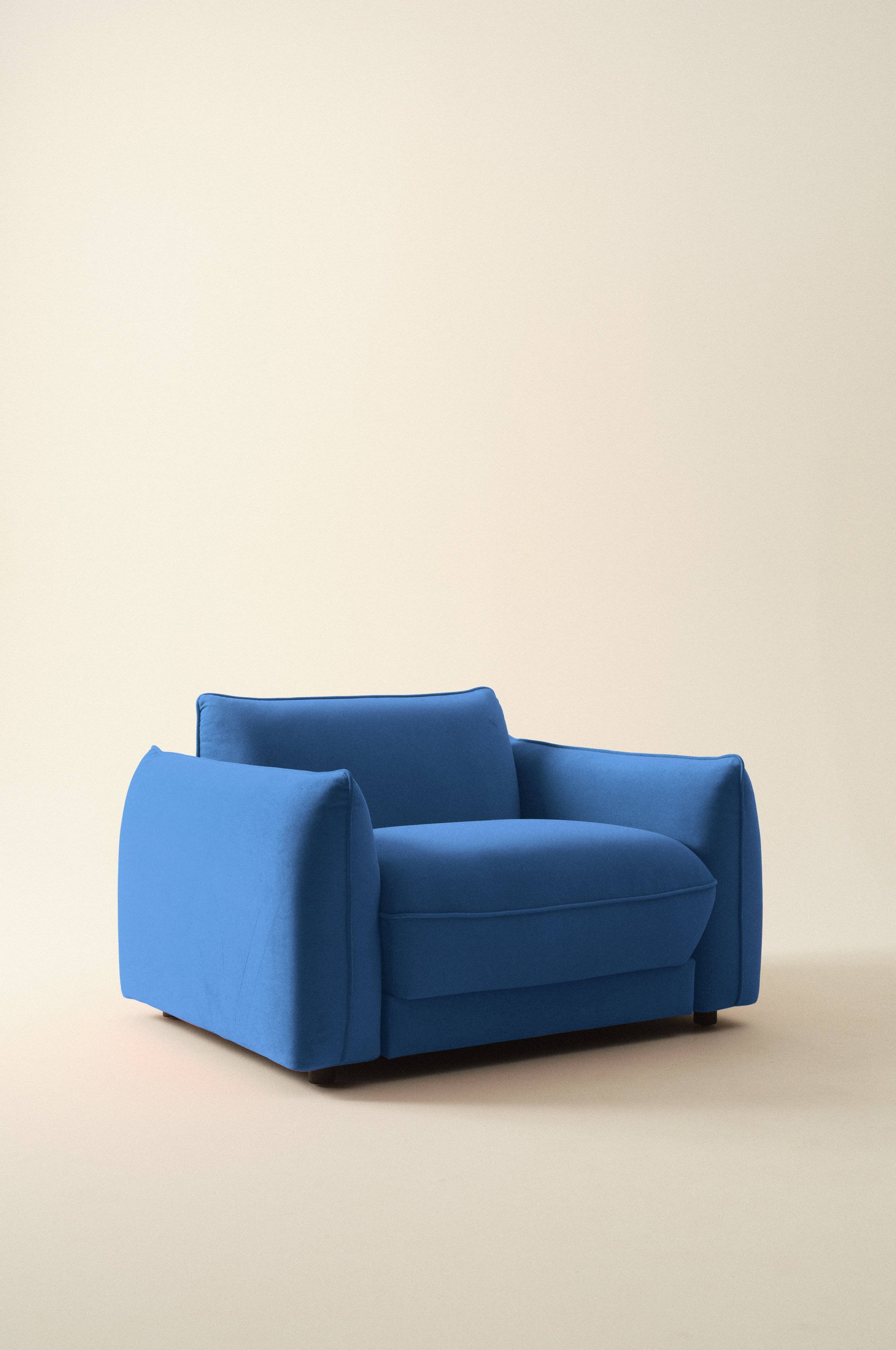 Lænestol med store, fyldige plyssæder og bløde, delikate former. Designet er både attraktivt og afslappet med afrundede former og blød fløjlspolstring lavet af genbrugsmaterialer. Lænestolen har et stel af massivt fyrretræ og krydsfiner. Sædedelen er lavet af koldskum og zigzagfjedring, som giver god siddekomfort, MOLTON er en lænestol, der er perfekt, når det er tid til at mødes med vennerne, måske er der gang i nogle selskabslege?