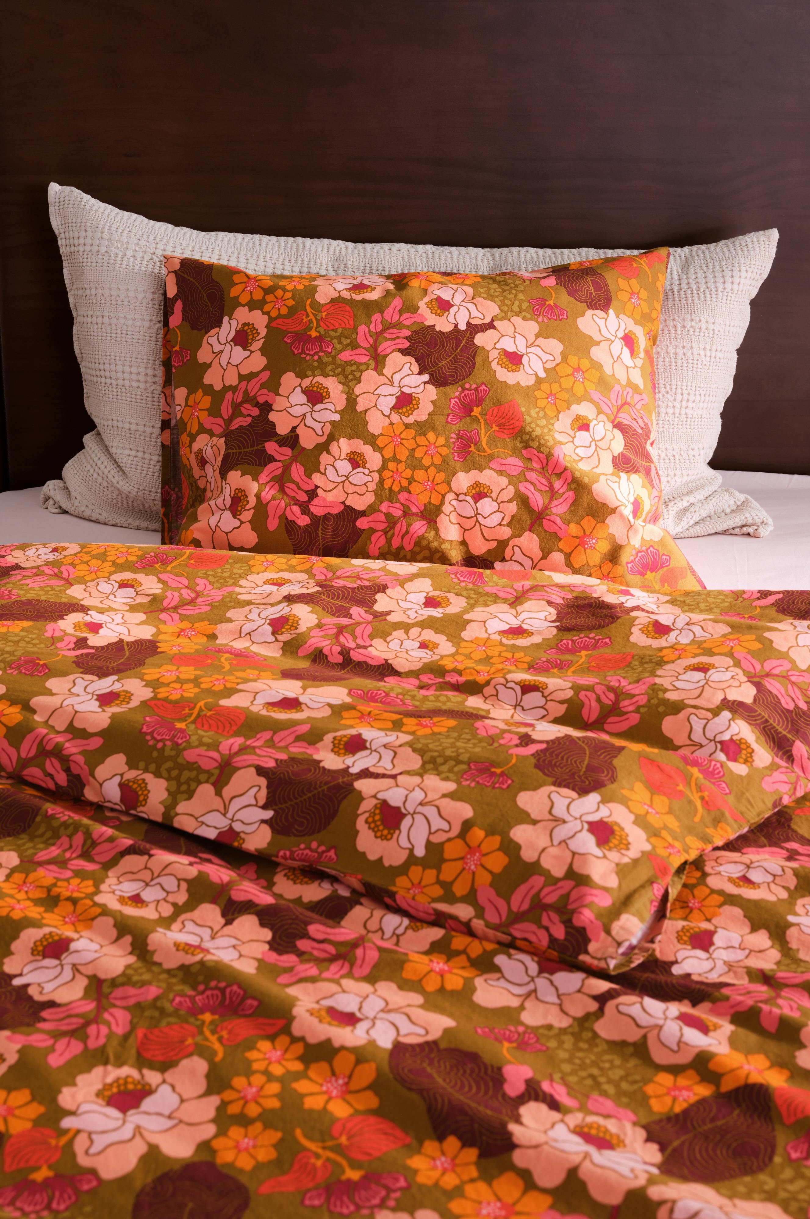 MONAH-sengesættet bringer retrocharme til dit soveværelse med sit pigmentprintede blomstermønster. Sættet indeholder et pudebetræk og et dynebetræk, og det giver komfort med sit enzymvaskede, bløde økologiske bomuldsstof, der er perfekt til enhver trendy indretning. Blomstermotivet sætter en nostalgisk tone, samtidig med at det supplerer moderne æstetik, hvilket gør det til et inspireret valg for dem, der søger et unikt twist på soveværelsesindretningen. Genindfør en ikonisk stil med MONAH-sengesættet.