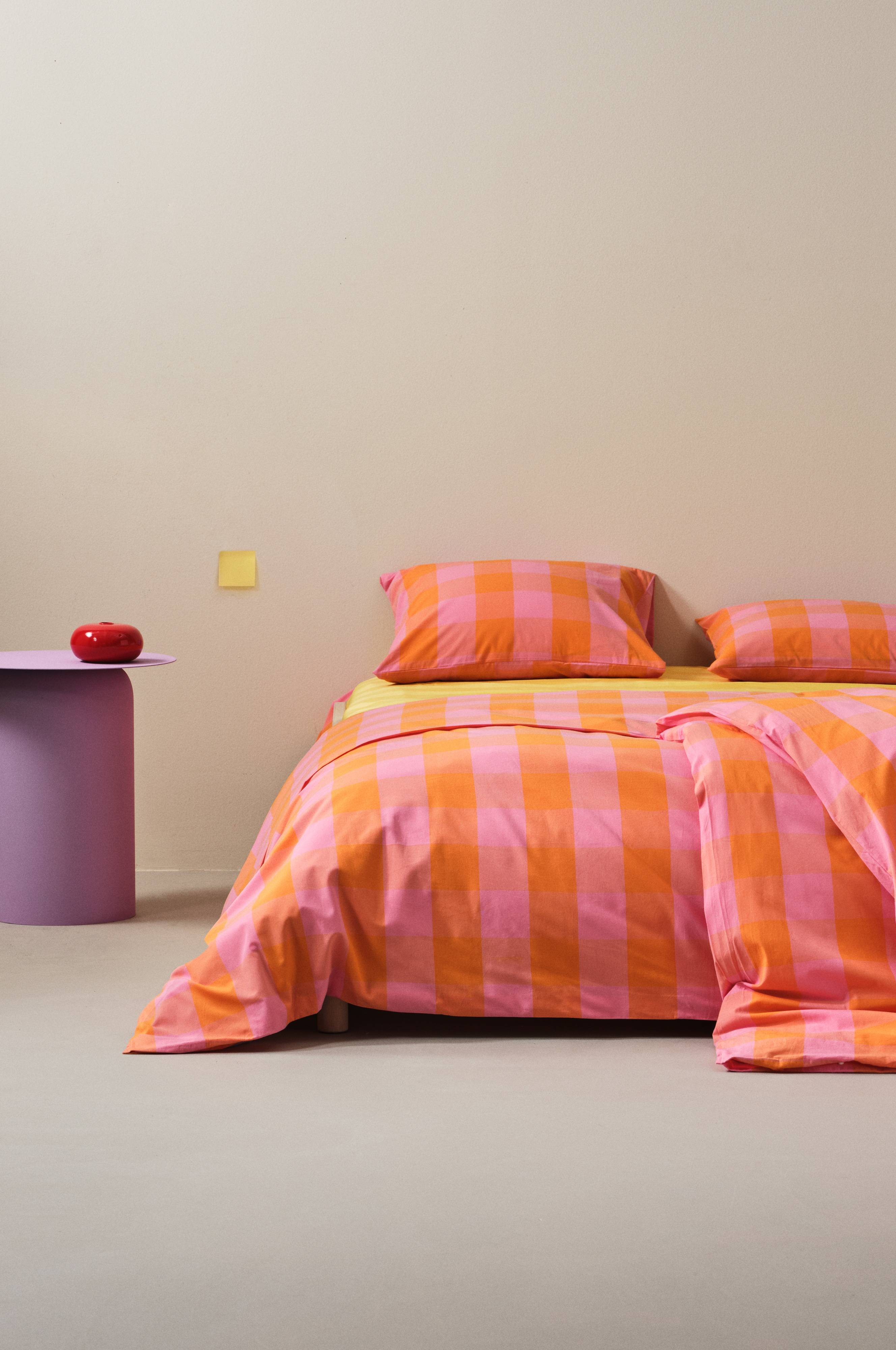 Dynebetræk i blød og skøn bomuldskvalitet. Det garnfarvede ternmønster går i lækre nuancer som ligger nær hinanden i tone hvilket skaber harmoni. Stoffet er ekstra blødt og bomuld er som alt køligt og skønt mod huden. Sengetøj i serien NAIMA har dobbeltsøm rundt om. Dynebetrækket lukkes med små hvide trykknapper. Trådtæthed på 184 tc. (Trådtætheden angiver antal tråde, Thread Counts, pr. kvadrattomme i et stof. Jo højere trådtæthed desto højere kvalitet.)