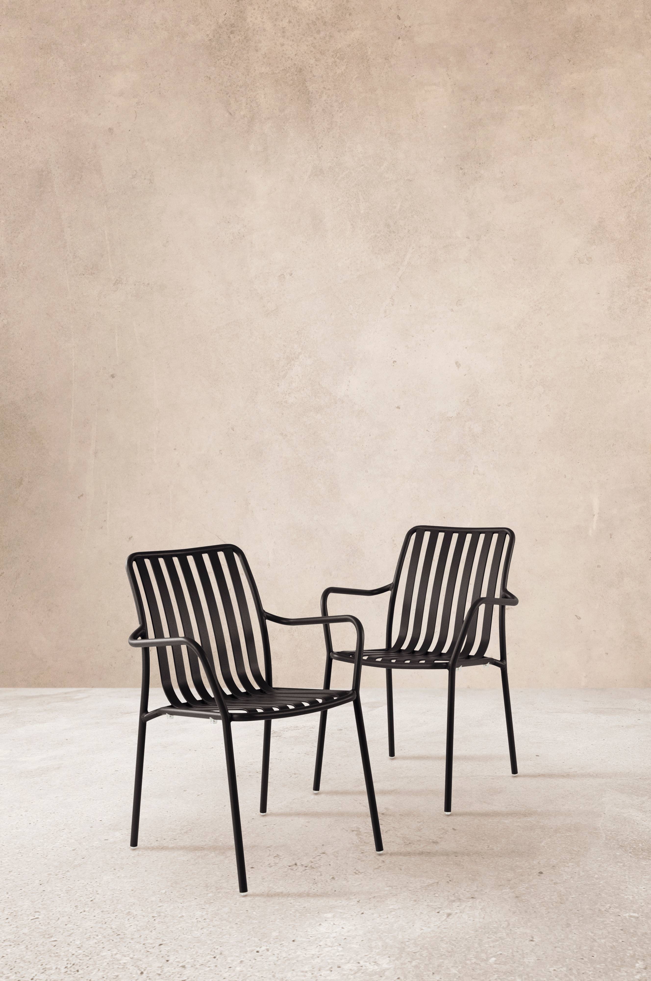2-pak stole med armlæn af aluminium med pulverlakeret finish. NANTERRE er en let og flot stol med armlæn med bløde linjer. Behagelig at sidde i og nem at flytte - aluminium er et let materiale, så vægten holdes nede. NANTERRE tåler at stå udendørs, aluminium ruster ikke og er nemt at tørre af.
