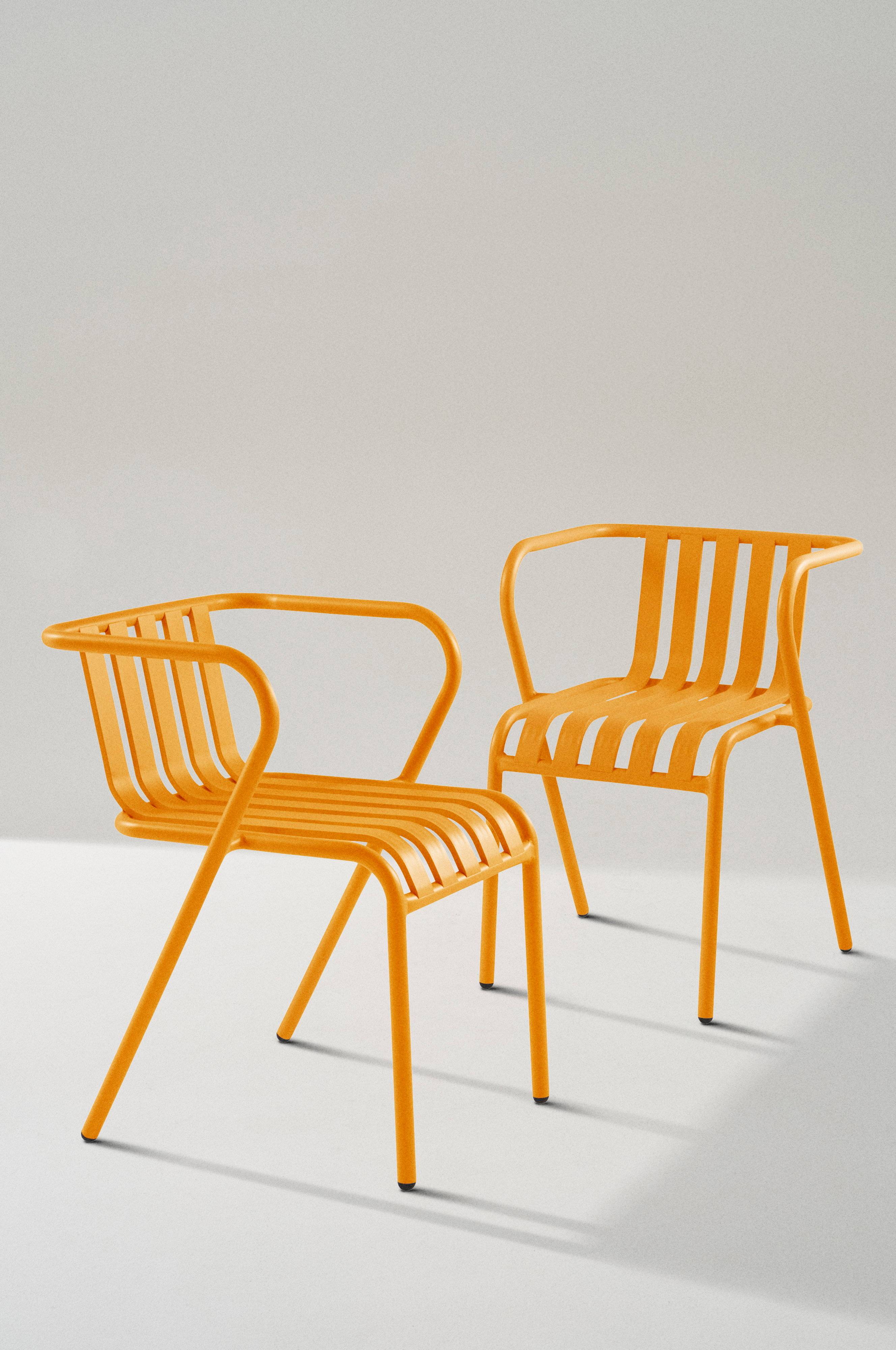 Stole med armlæn i 2-pak af aluminium med mat overflade. Serien NERJA har bløde linjer men er også cool i sit udtryk. Aluminiumsprofilen er lidt kraftigere, men aluminium er et let materiale, så NERJA har en lav vægt. NERJA tåler at stå udendørs, aluminium ruster ikke og er nemt at tørre af. Stolene er stabelbare.
