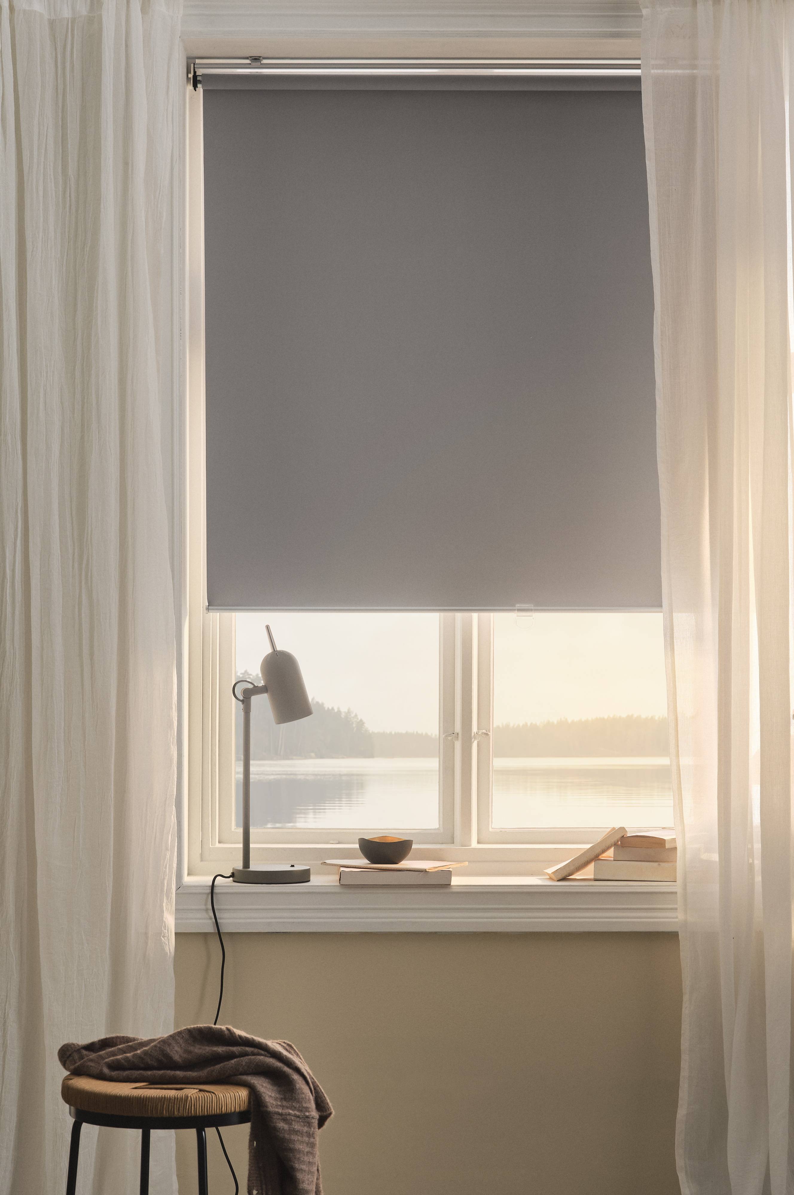 NIKA er et rullegardin til mørklægning. Rullegardinet er fremstillet af polyester i en microkvalitet som er ekstra smidig, samtidig med at lyset lukkes ude af en mørklæggende belægning. 50% er genindvundet materiale. Gardinet er lige så fint på bagsiden som på forsiden. Rullegardinet har metalbeslag foroven, som du fastgør på væggen. Forneden sidder en rund metalstav. Et transparent plastgreb på den nederste stav betyder, at du nemt kan trække gardinet ned og rulle det op. Beslag medfølger. Let at montere. Samlevejledning medfølger.