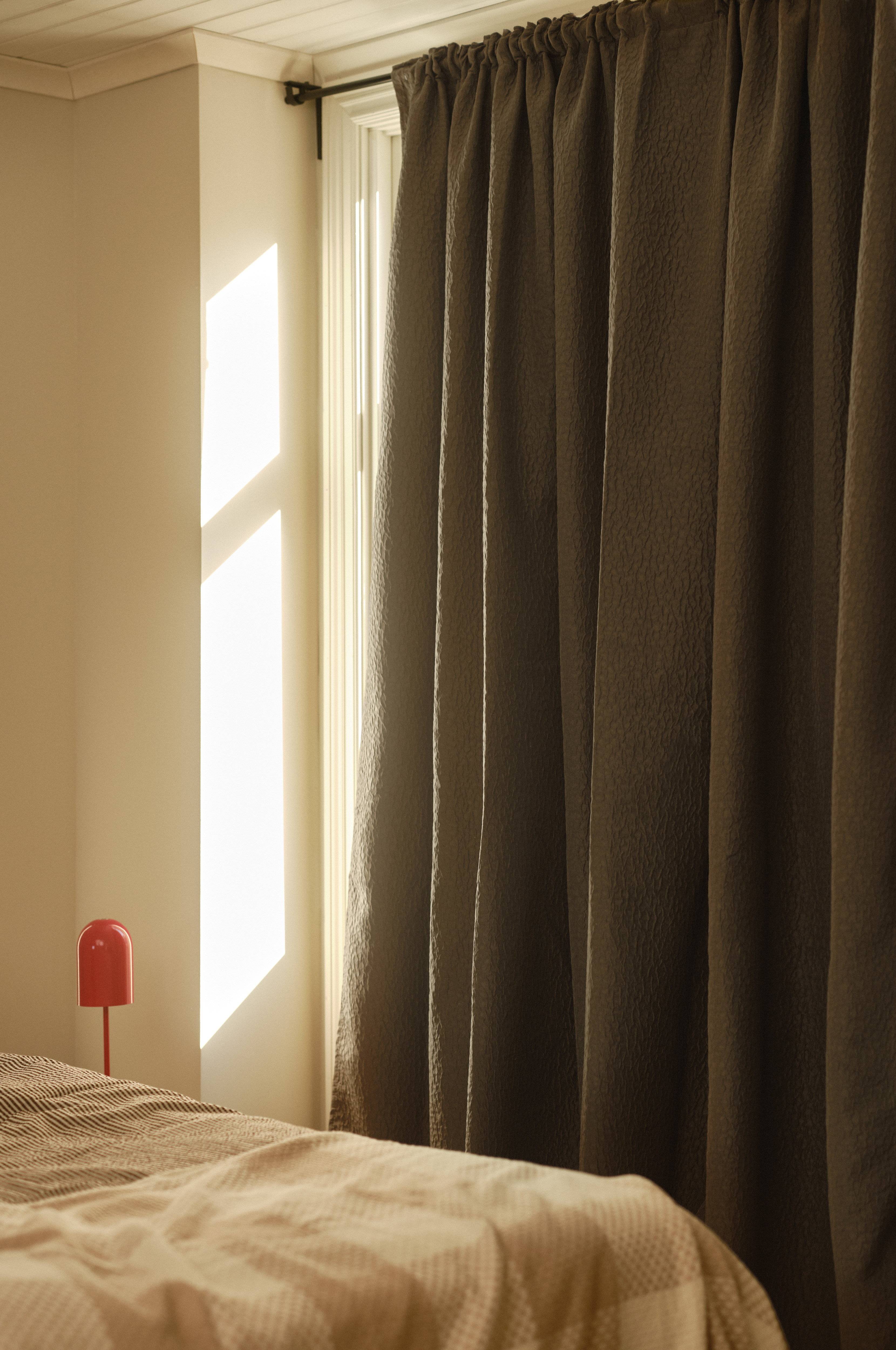 En gardinlængde til mørklægning, fremstillet af polyester. Gardinet er tætvævet, så belægning på bagsiden ikke er nødvendigt. NOCTIS har en boblet overflade og falder fint, når du hænger det op. Denne model er ekstra bred og giver dig fine muligheder at få en mørk og behagelig nat, også med rigtigt store vinduer. I dagtimerne trækker du en bred længde til siden og får lyset ind. Bemærk at de forskellige farver varierer i mørklægning. Multifunktionsbåndet foroven giver dig mulighed at variere din ophængning med skjult strop, løbegang samt foldebånd for fingerhægter.