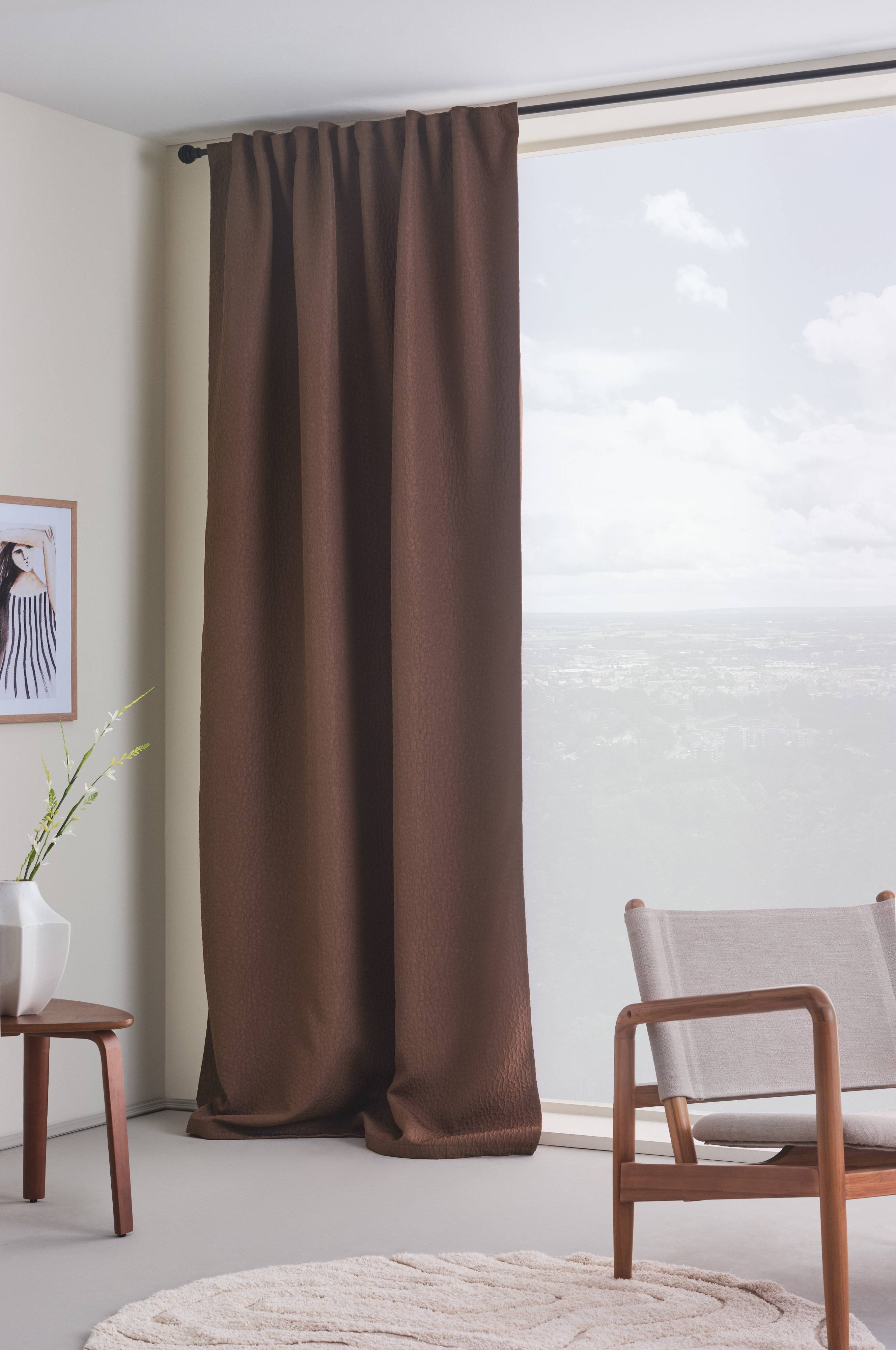 En gardinlængde til mørklægning, fremstillet af polyester. Gardinet er tætvævet, så belægning på bagsiden ikke er nødvendigt. NOCTIS har en boblet overflade og falder fint, når du hænger det op. I dagtimerne trækker det fra og får lyset ind. Bemærk at de forskellige farver varierer i mørklægning. Multifunktionsbåndet giver dig mulighed at variere din ophængning med skjult strop, løbegang samt foldebånd for fingerhægter.