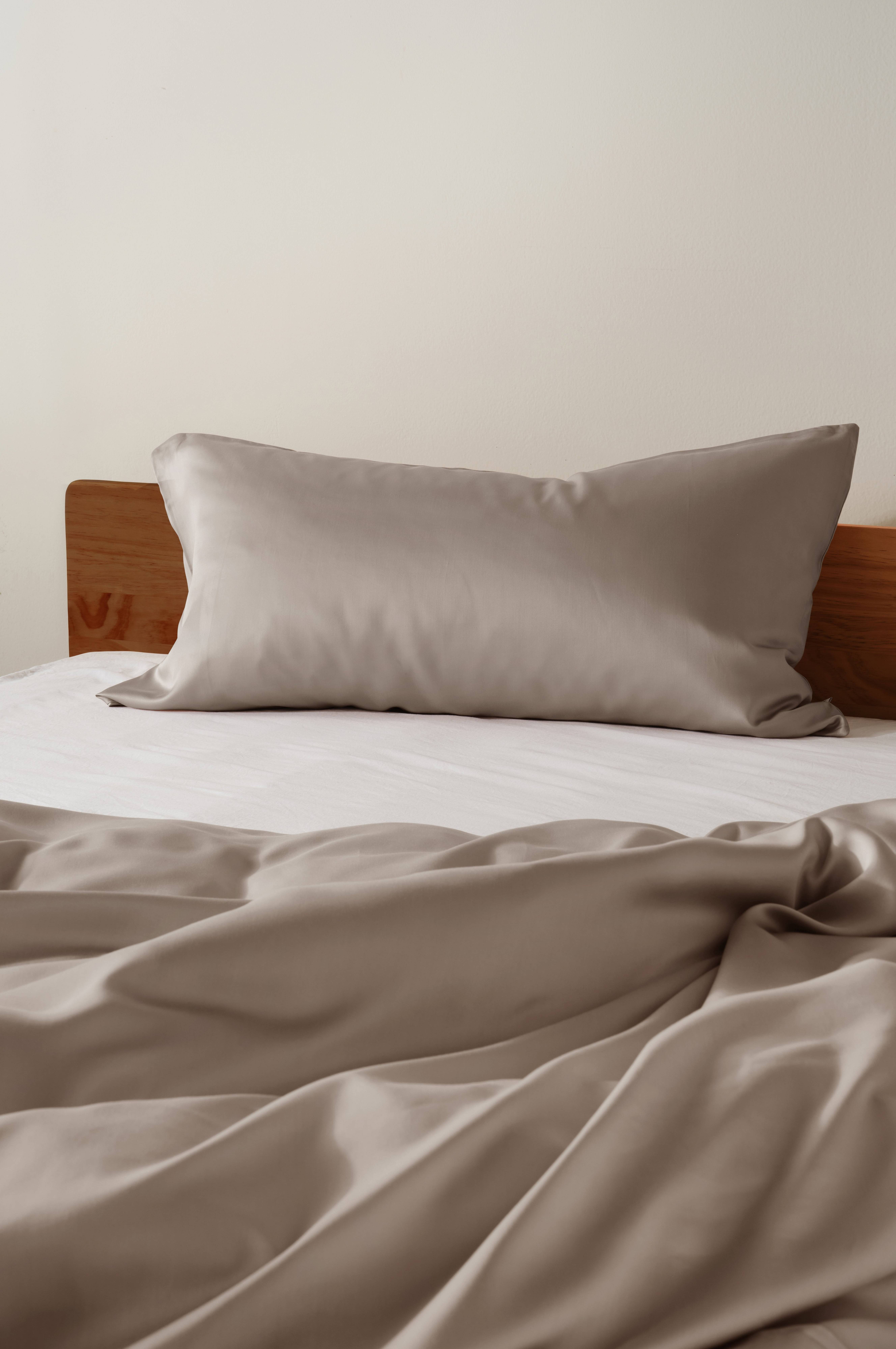 Ensfarvet pudebetræk i luksuriøs, satinvævet lyocell. Lyocell er et blødt, behageligt materiale og når det er satinvævet bliver det silkeglat og får en smuk glans som reflekterer lyset. NOELA er ensfarvet i mørke nuancer. Stoffets gramvægt er 118 g/m². Trådtæthed på 300 tc. (Trådtætheden angiver antal tråde, Thread Count, pr. kvadrattomme i et stof. Jo højere trådtæthed desto højere kvalitet.)