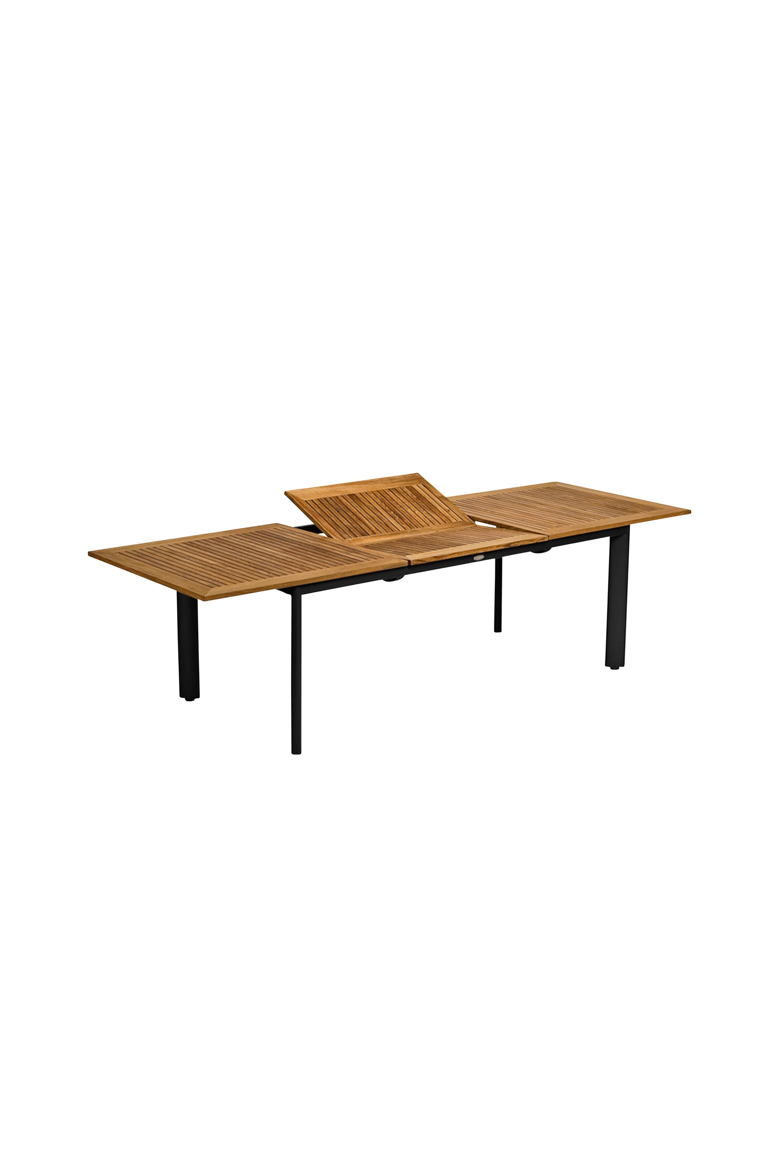 NYDALA bord 96x200 cm med sorte aluminiumsben og bordplade i teaktræ.