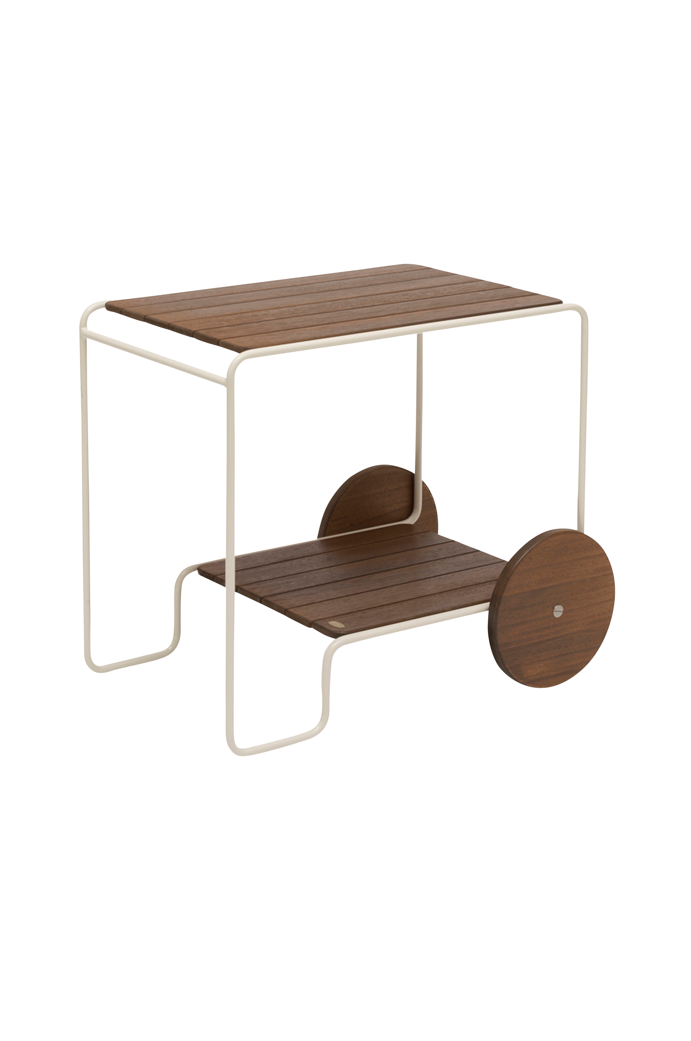 OAS serveringsvogn i hvidlakeret stål. Fremstillet af hvidlakeret metalstel og FCS-mærket fyrretræ (kernetræ) fra Norrland i Sverige. Serien er formgivet af møbeldesigneren Sebastian Hedengrahn.