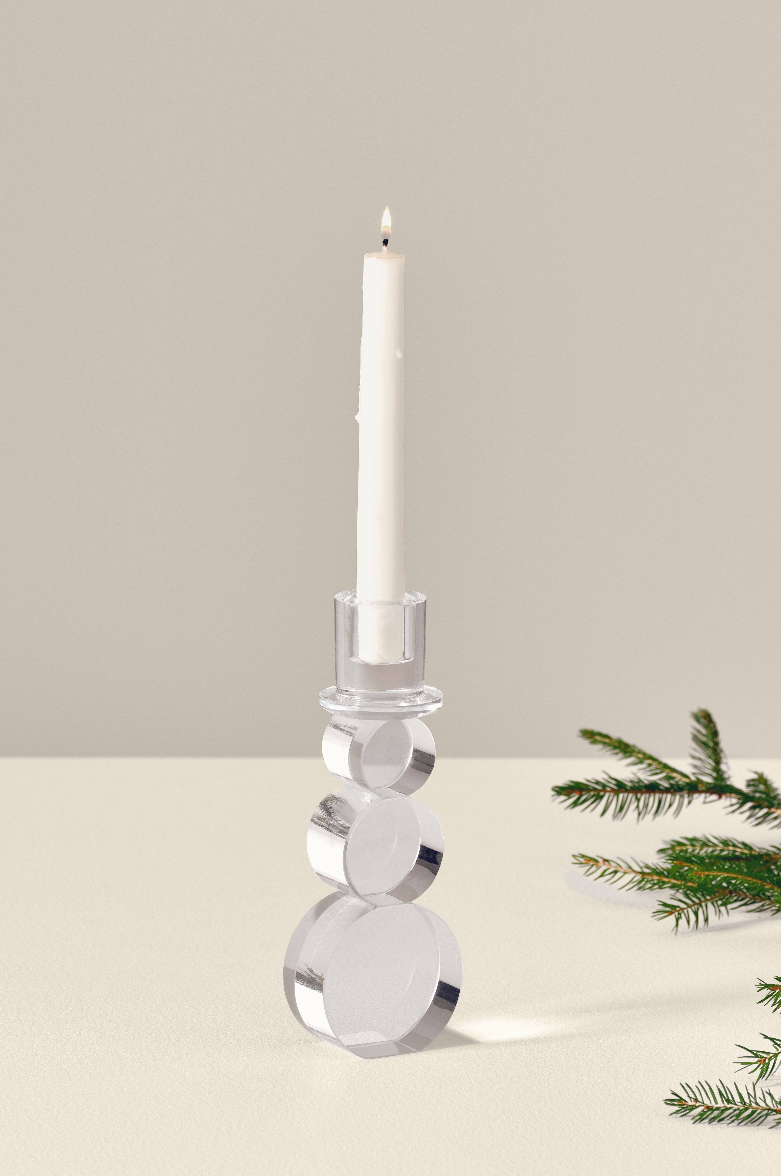 Lysestage formet som en snemand. Glas med et krystalagtigt look giver luksus og elegance til ethvert rum. Perfekt til vinterdekorationer. Sæt et festligt præg på din boligindretning med OLOF-lysestagen i juletiden.