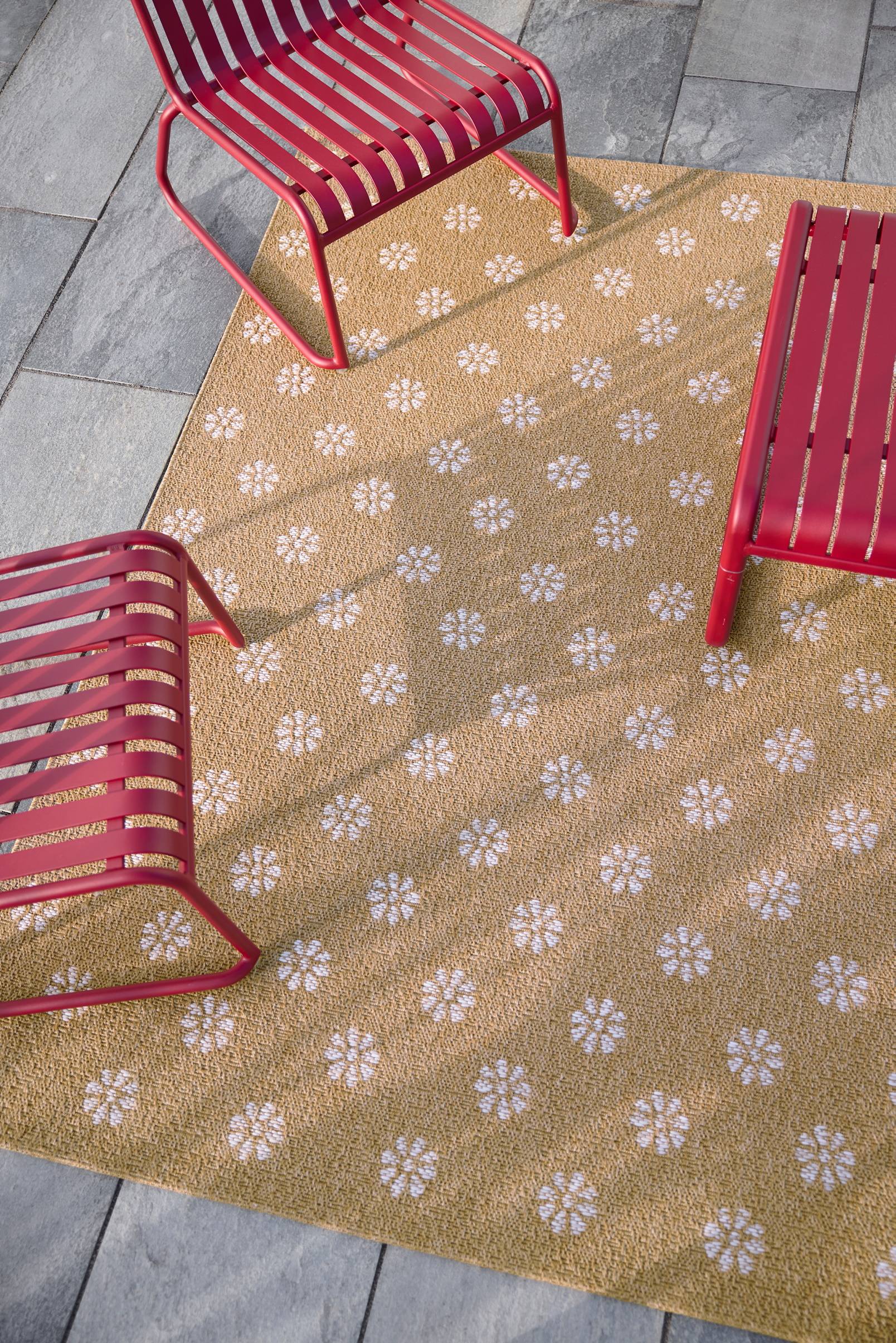 Tip/råd: Vend tæppet en gang imellem, så det slides jævnt. Stærk sol kan få det til at falme.