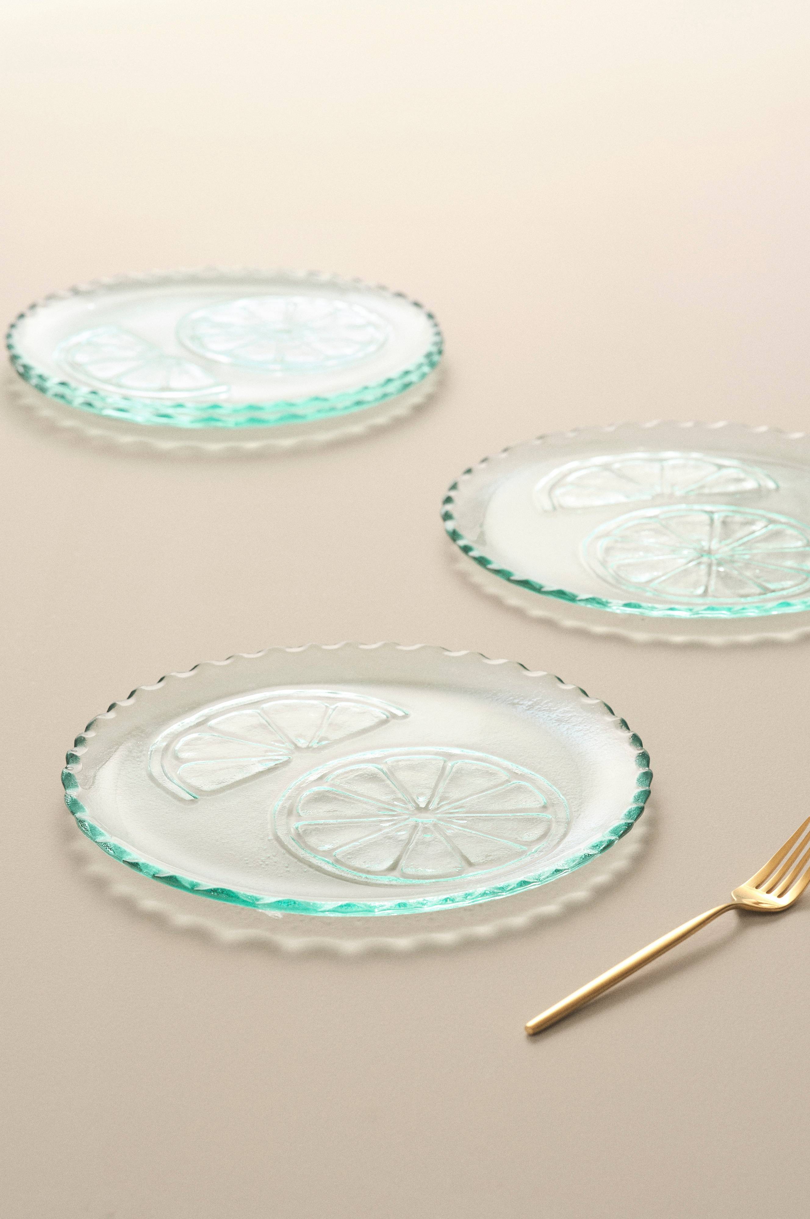 4-pak tallerkener af glas med sød tungekant rundt om og motiv af citrusfrugt i glas. De charmerende tallerkener gør hvert måltid til en fest og de er desuden velegnet som anretningsfad.