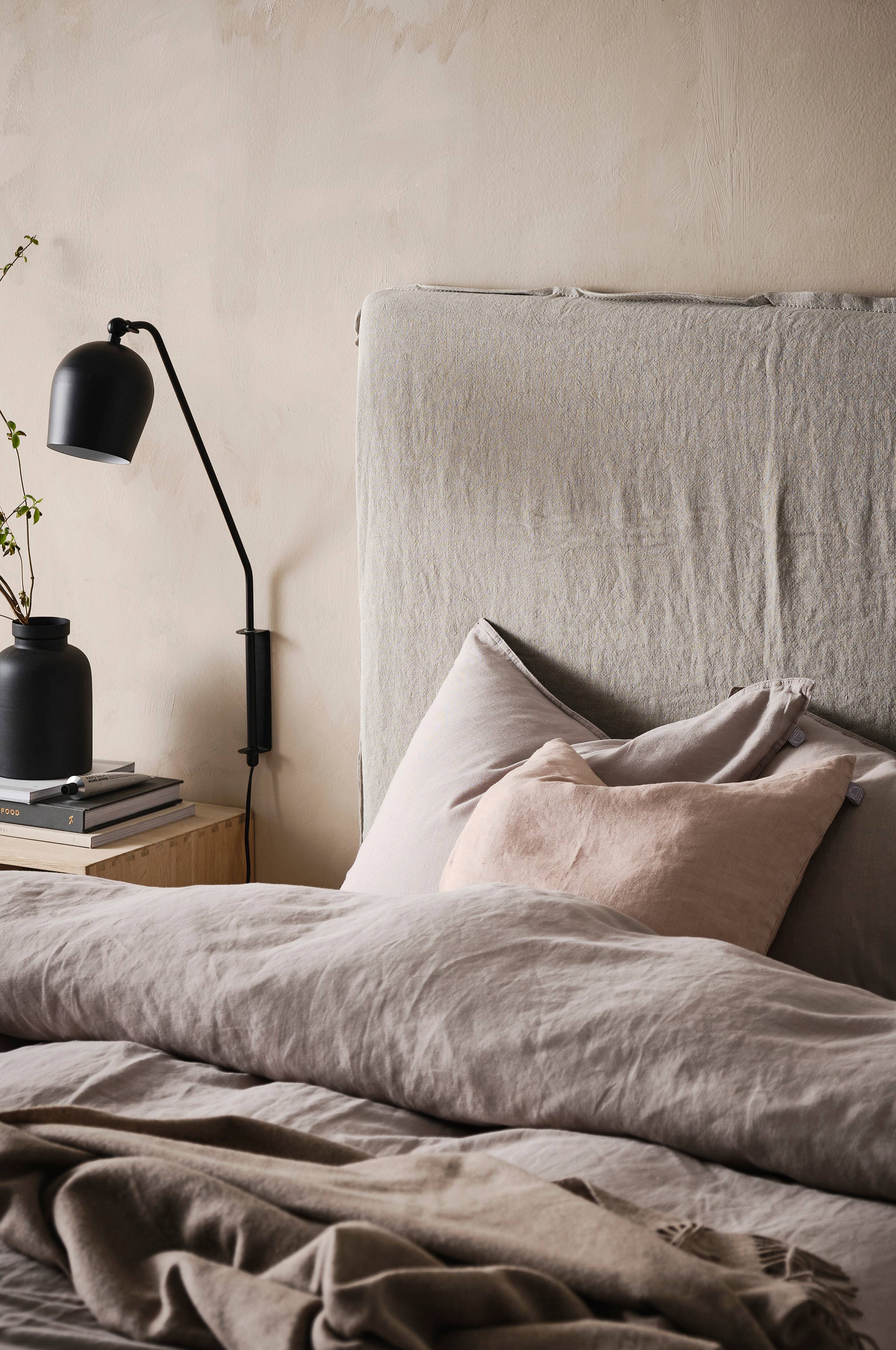 Fritstående gavl med aftageligt hørbetræk og fyld af skumgummi. Skab et afslappet look med en sengegavl med aftageligt hørbetræk.