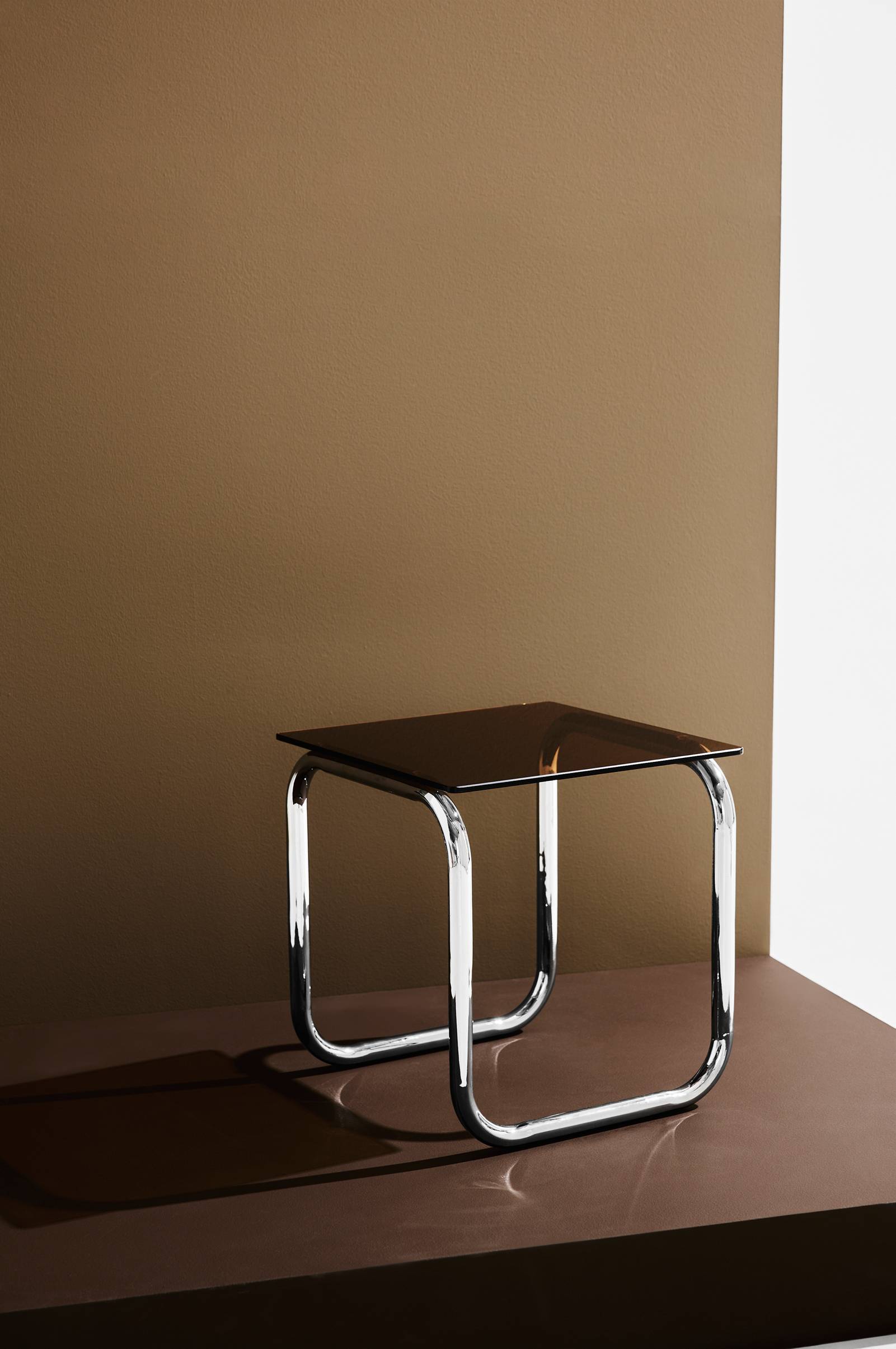 Lulu-sofabordet giver dit værelse en luftig og rummelig fornemmelse. Kontrasten mellem krom og glas er en tilbagevendende klassiker blandt indretningstendenser. Sidebordet kombinerer det futuristiske med stilfulde retroindtryk. Det svævende kromrørsstel i ét stykke er toppet med en glasbordplade. Bordpladen har let afrundede hjørner.