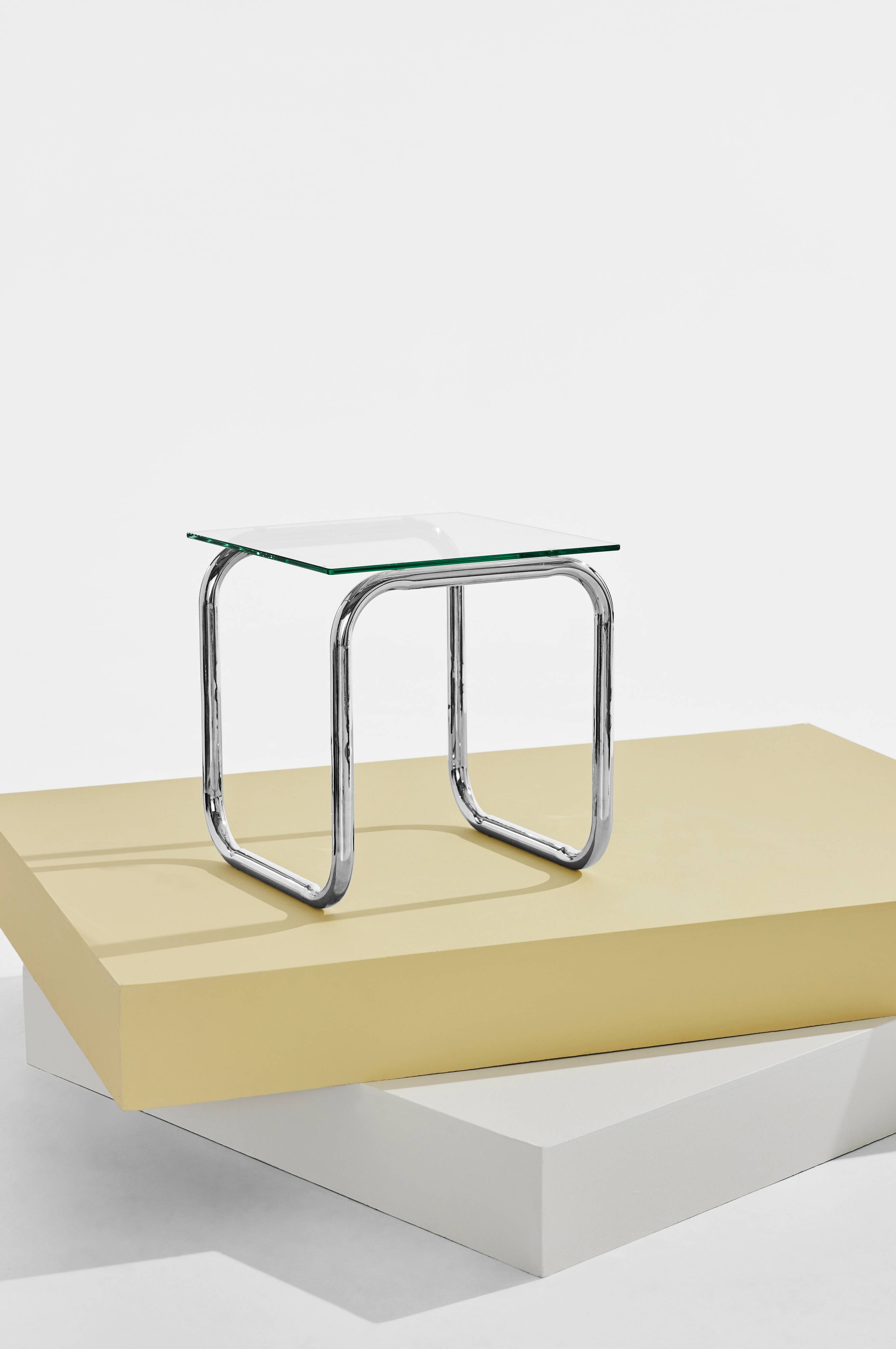 Lulu-sofabordet giver dit rum en luftig og rummelig fornemmelse. Kontrasten mellem krom og glas er en tilbagevendende klassiker blandt indretningstendenser. Sidebordet kombinerer det futuristiske med fine retroindtryk. Det svævende kromrørsstel i ét stykke er toppet af en bordplade i glas. Bordpladen har let afrundede hjørner.