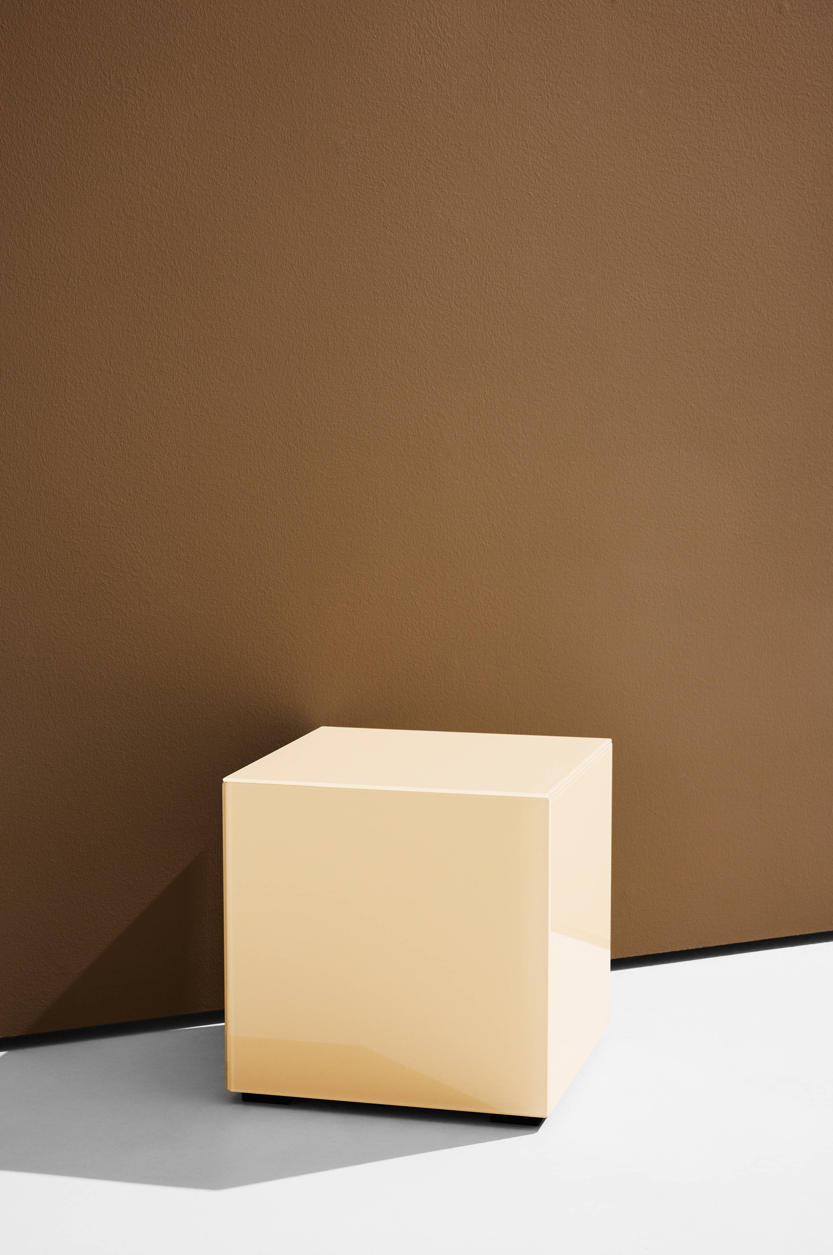 Kuben er en rigtig eye-catcher som stjæler al opmærksomheden. Den har sider og top af glas med farvestrålende, lakeret inderside som giver en lækker transparent effekt. Små skjulte ben betyder, at kuben ser ud som om den svæver lidt. Stellet er af FSC-certificeret MDF, som er dækket med spejlglas. Pop påvirker alle - ungt og frækt.