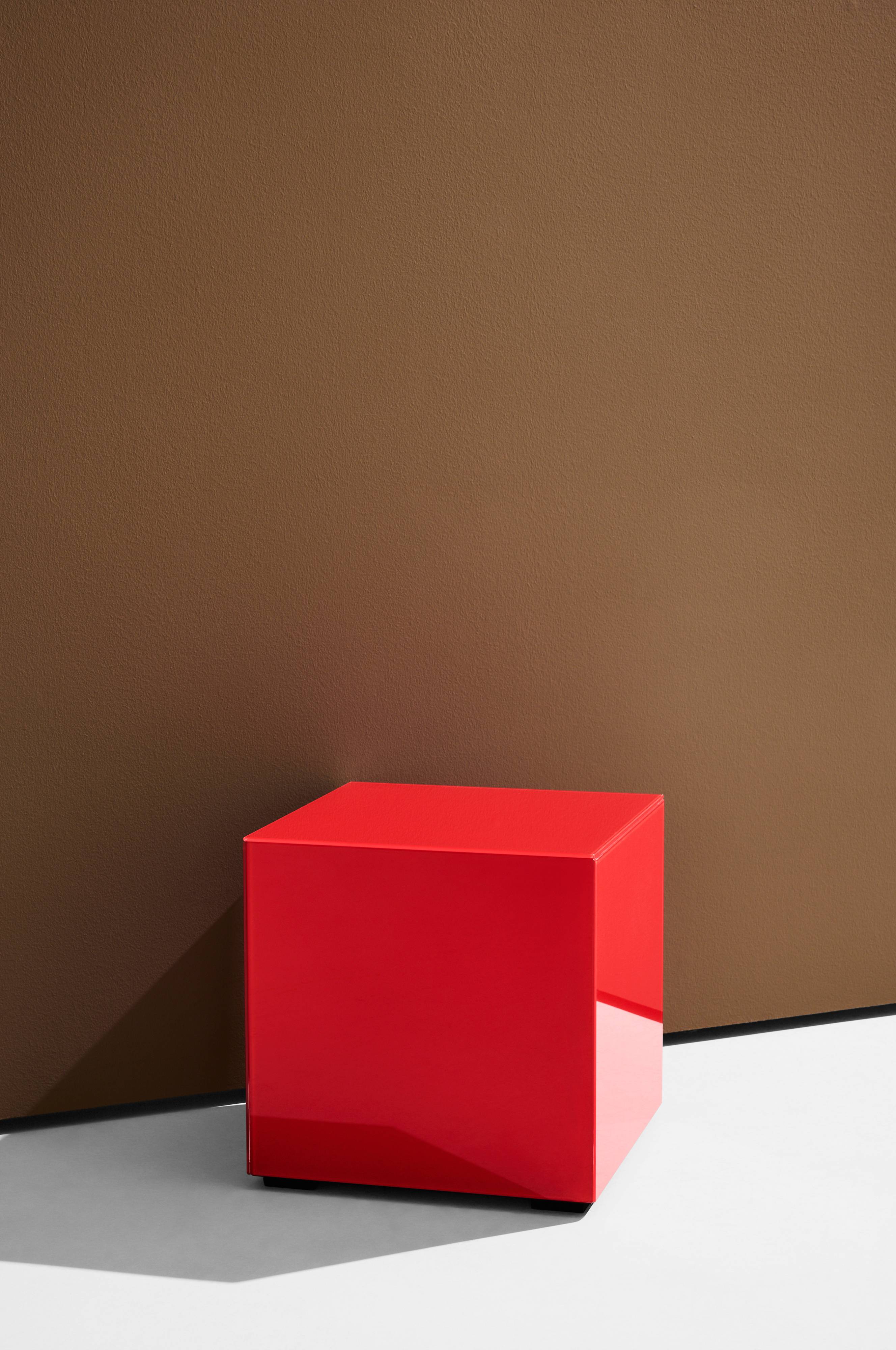 Kuben er en rigtig eye-catcher som stjæler al opmærksomheden. Den har sider og top af glas med farvestrålende, lakeret inderside som giver en lækker transparent effekt. Små skjulte ben betyder, at kuben ser ud som om den svæver lidt. Stellet er af FSC-certificeret MDF, som er dækket med spejlglas. Pop påvirker alle - ungt og frækt.