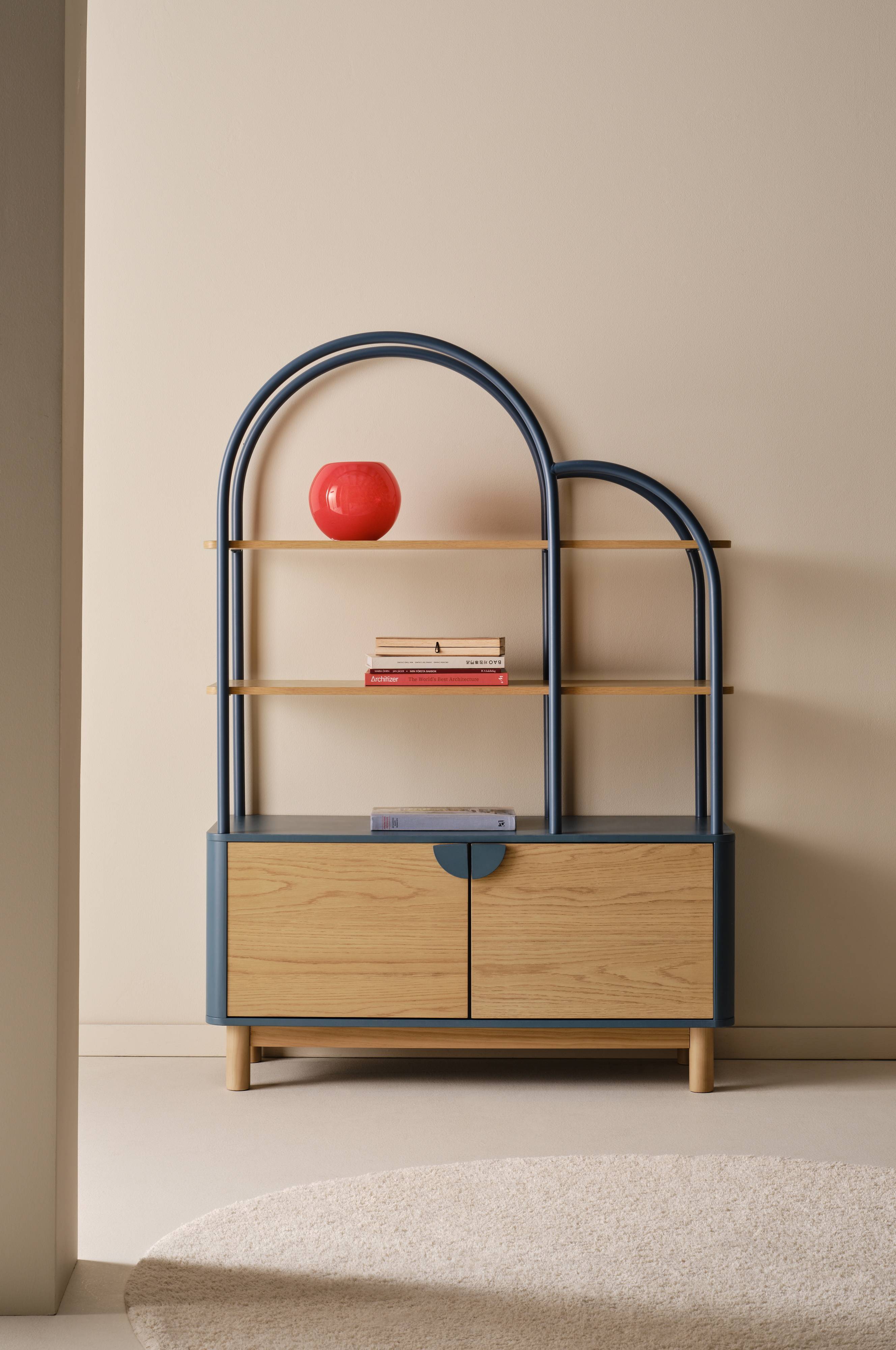 PENNY-hylden forener det praktiske med stil og er perfekt til børneværelset. Hylderne er lavet af MDF med egetræsfinér, og stålrammen er pulverlakeret for at give ekstra flair. Det buede design skaber et moderne look, mens åbne hylder giver plads til legetøj og bøger. To døre i bunden giver diskret opbevaring af rod. Denne reol er ideel til at organisere og fremvise værdsatte ting og tilføjer et strejf af moderne charme til dit barns rum.