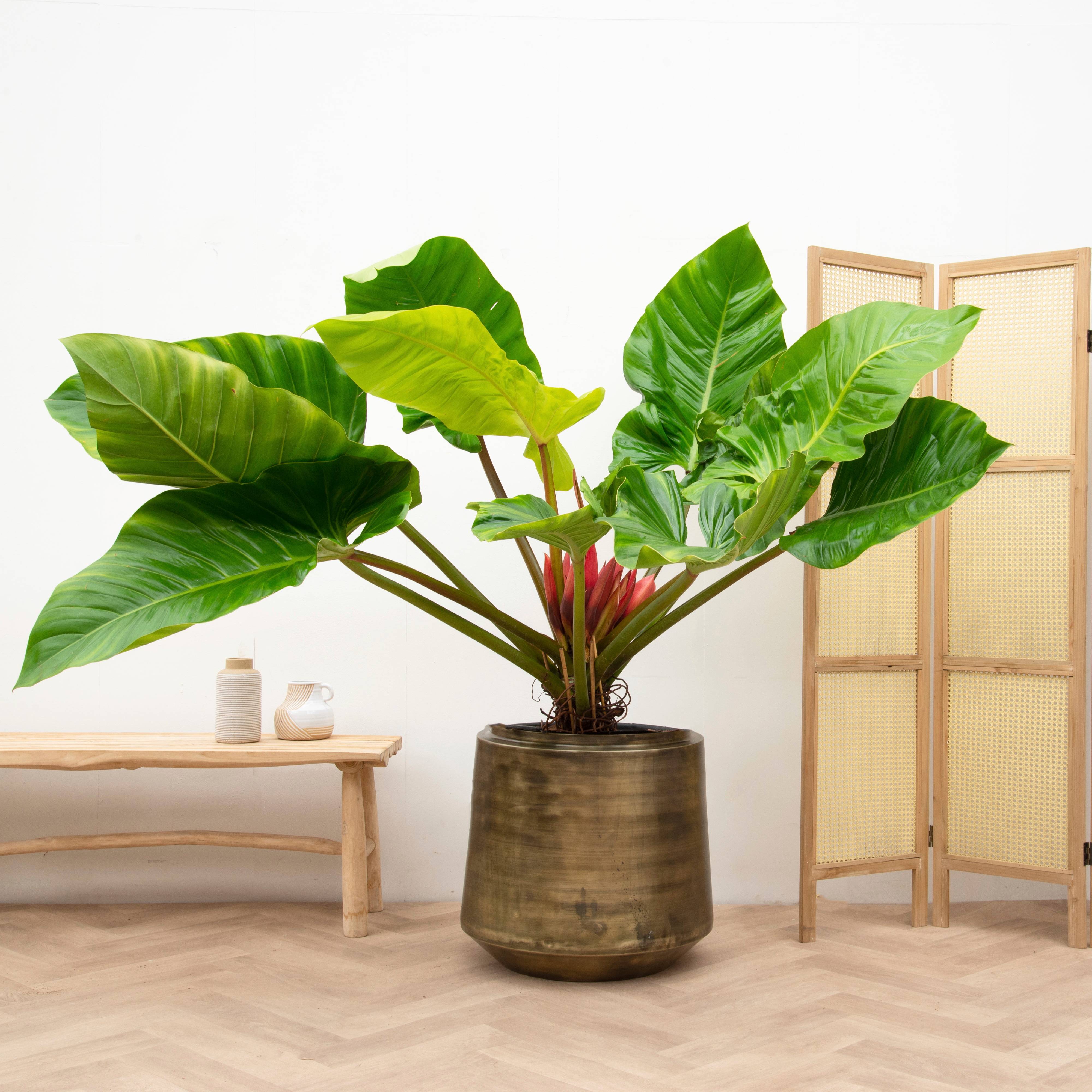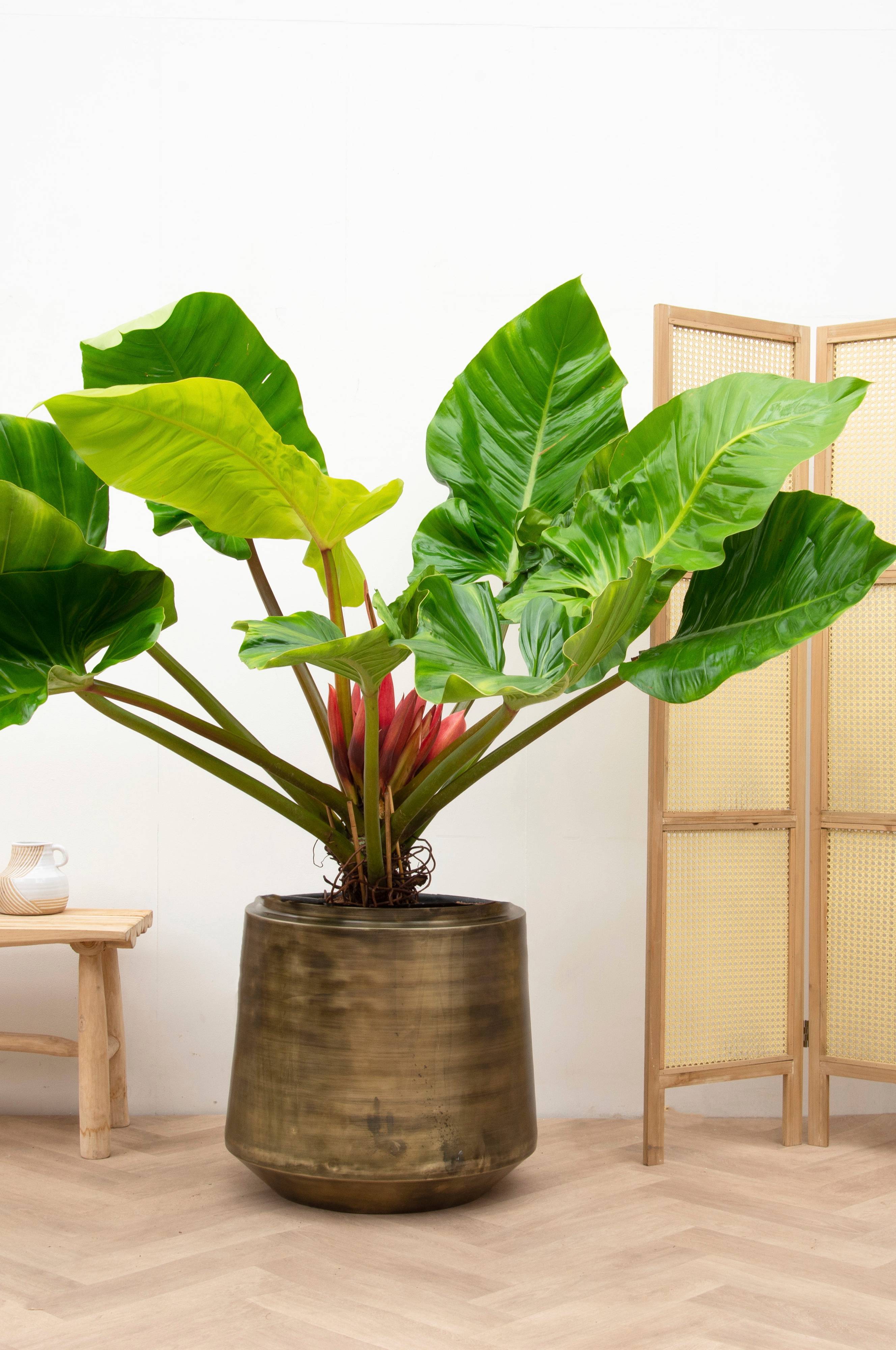 Philodendron Melinonii Ghost er medlem af filodendronfamilien fra regnskovene i Sydamerika. Her vokser filodendron hovedsageligt som klatrere på højere planter og træer. Udover dens fantastiske udseende og luftrensende effekt er den også nem at passe. Trives i både dagslys og skygge med let fugtig jord. Philodendron er giftig ved indtagelse. Højde 140 cm. Krukkediameter 50 cm. Potteskjuler medfølger ikke. Duft: ingen.