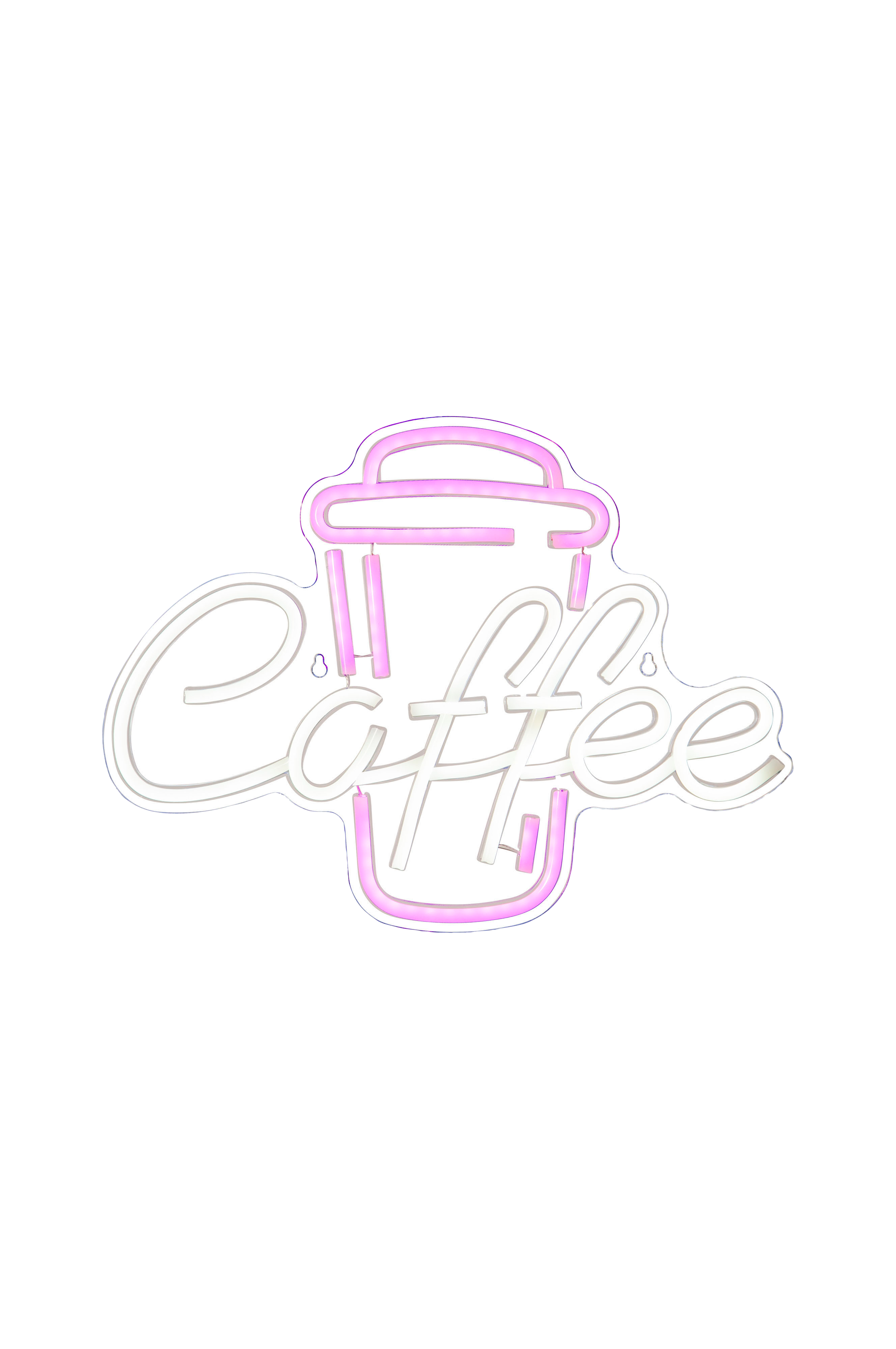 Cool indendørs dekoration med coffee skilt. Transparent plexi-plade med led-lys. Produktet har et usb kabel.