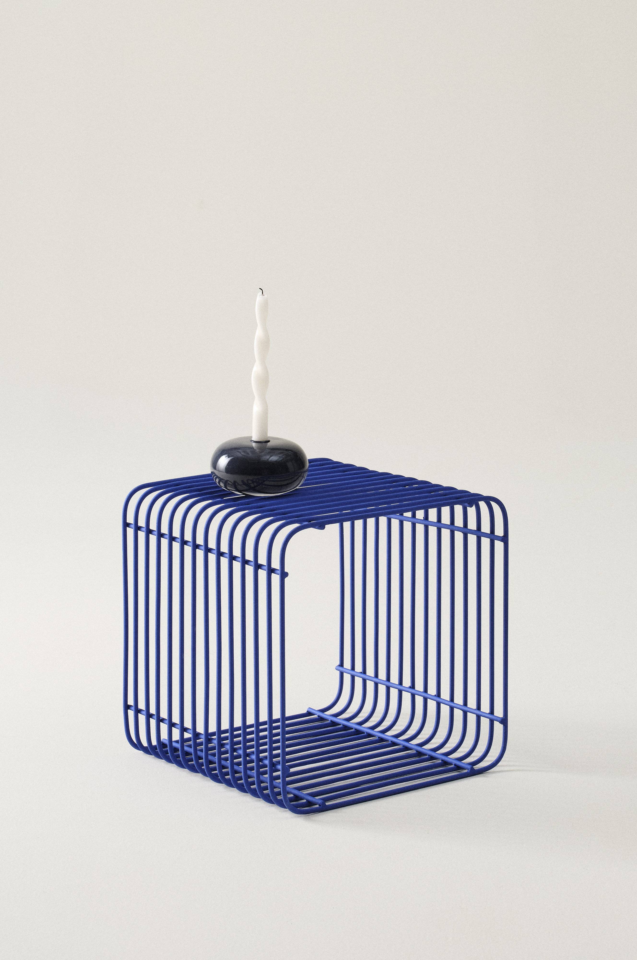 Kubeformet sidebord af metaltråd, der er blevet pulverlakeret i klare farver. Lige tråd formet til et bord med runde hjørner føles både trendy og legende, dit valg af farve sætter tonen.