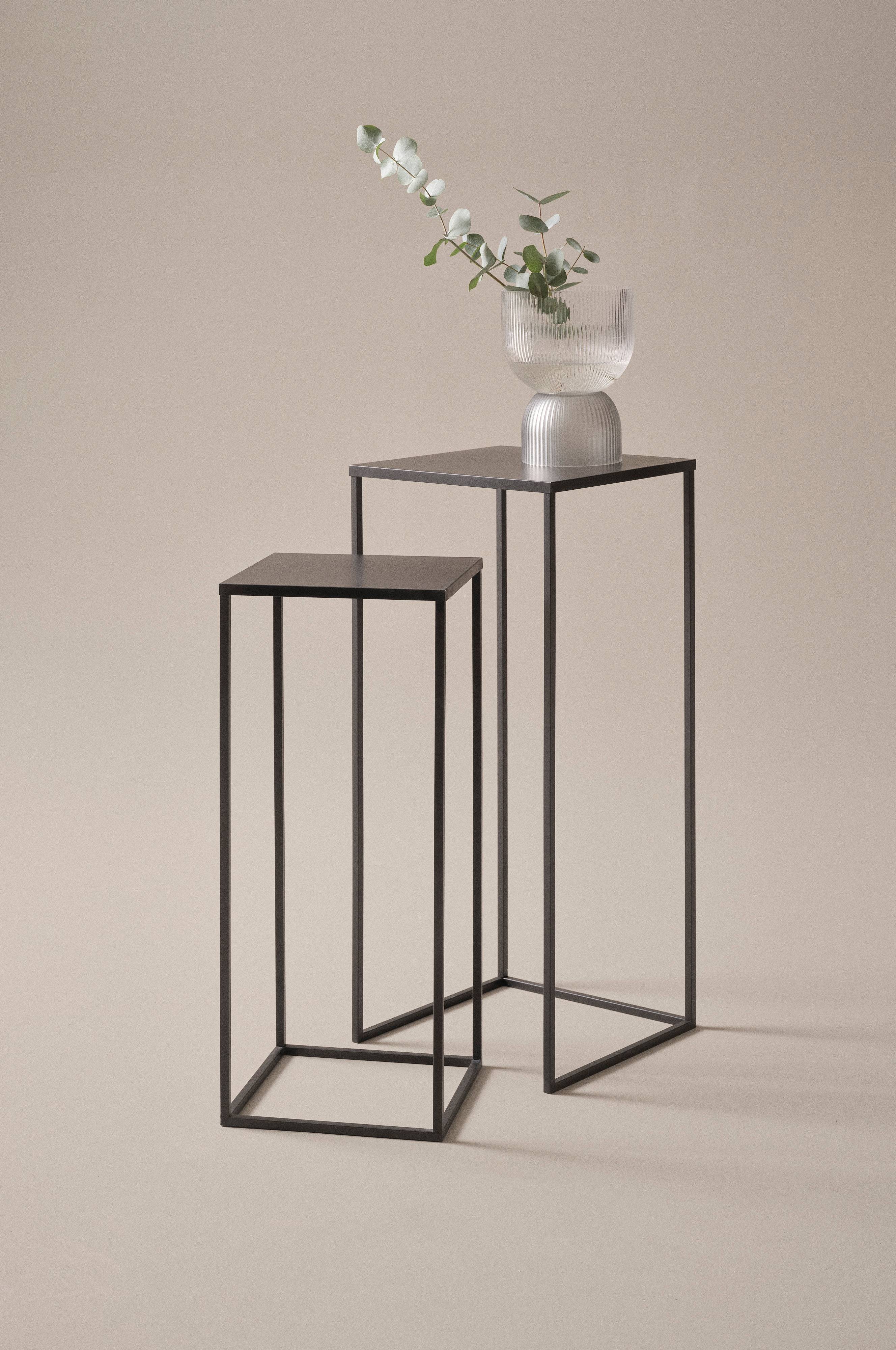 2-pak piedestaler af jern med pulverlakeret overflade. POTTERY er kvadratisk og du får to piedestaler i forskellige størrelser, en der er 60 cm høj og en der er 70 cm høj. De ser flotte ud sammen og du kan have dem forskellige steder i dit hjem, fleksible og gode. Disse piedestaler fungerer også godt udendørs eller i din udestue. Perfekt til dig som elsker at plante. Obs! Hvis overfladen revner, kan den ruste med tiden.