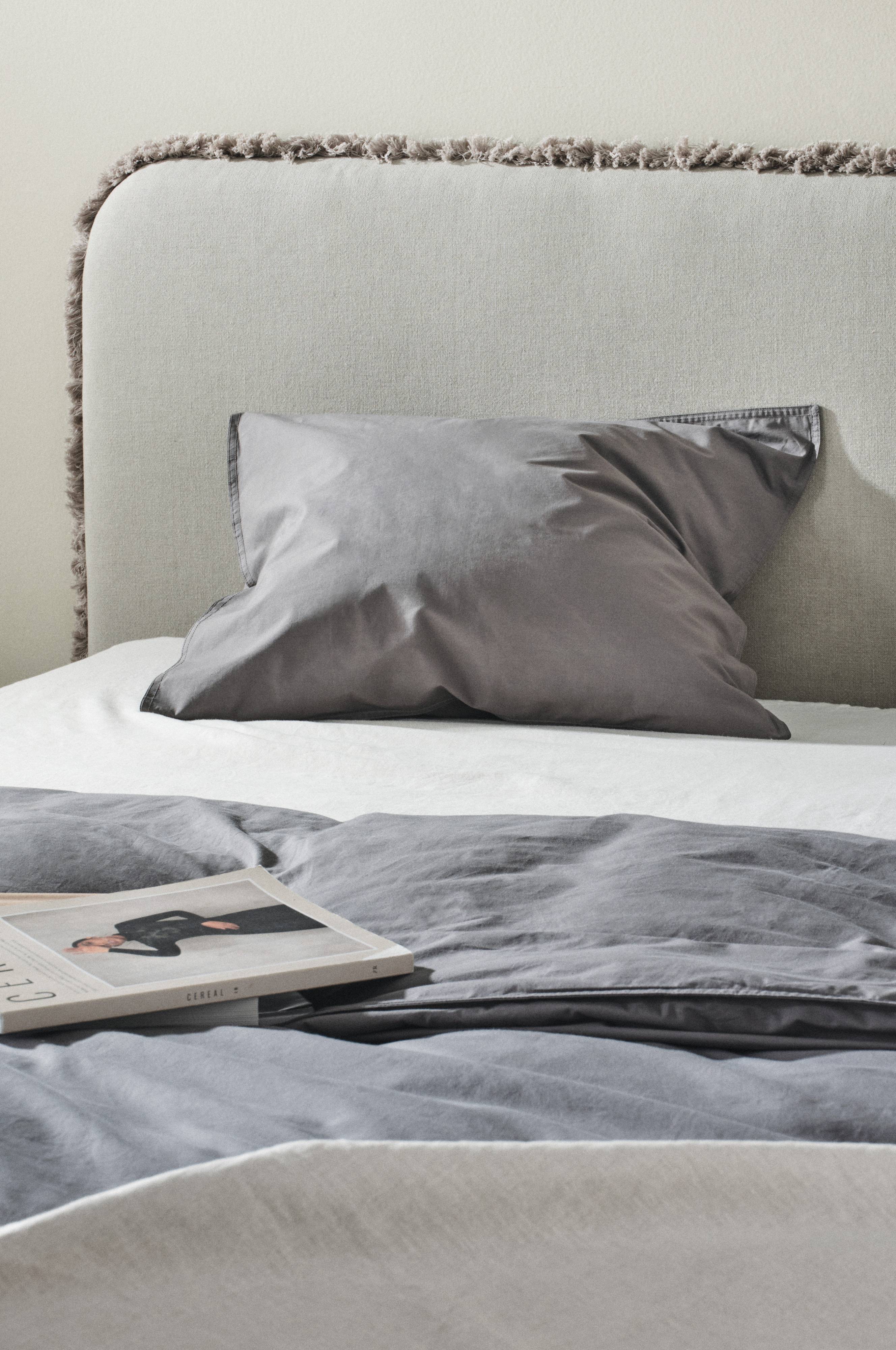 1-pak ensfarvet pudebetræk af blød, økologisk bomuldspercale. Percale er et ekstra blødt og behageligt stof som er vævet med tynde, fine bomuldstråde. Sengetøjet i serien REMY har dobbeltsøm rundt om. Trådtæthed på 200 tc. (Trådtætheden angiver antal tråde, thread counts, pr. kvadrattomme i et stof. Jo højere trådtæthed desto højere kvalitet.)