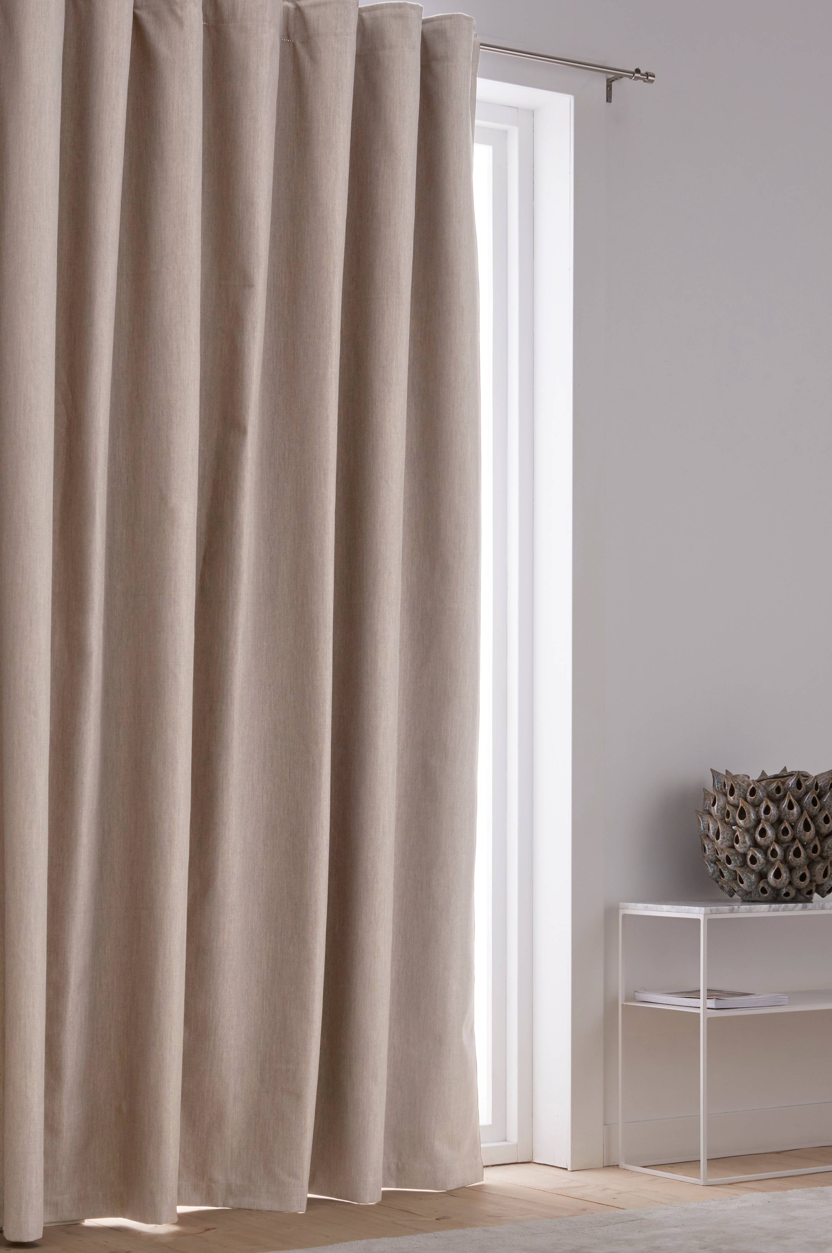 En gardinlængde i polyester med påsyet multifunktionsbånd og mørklæggende bagside. Luk lyset ude, når du vil. Mørklægningsgardinet har struktur, mat overflade og samtidig glans i trådene, hvilket skaber et elegant udtryk i rummet. Multifunktionsbåndet giver dig mulighed for at variere din ophængning med rynkebånd, skjulte stropper eller foldebånd.