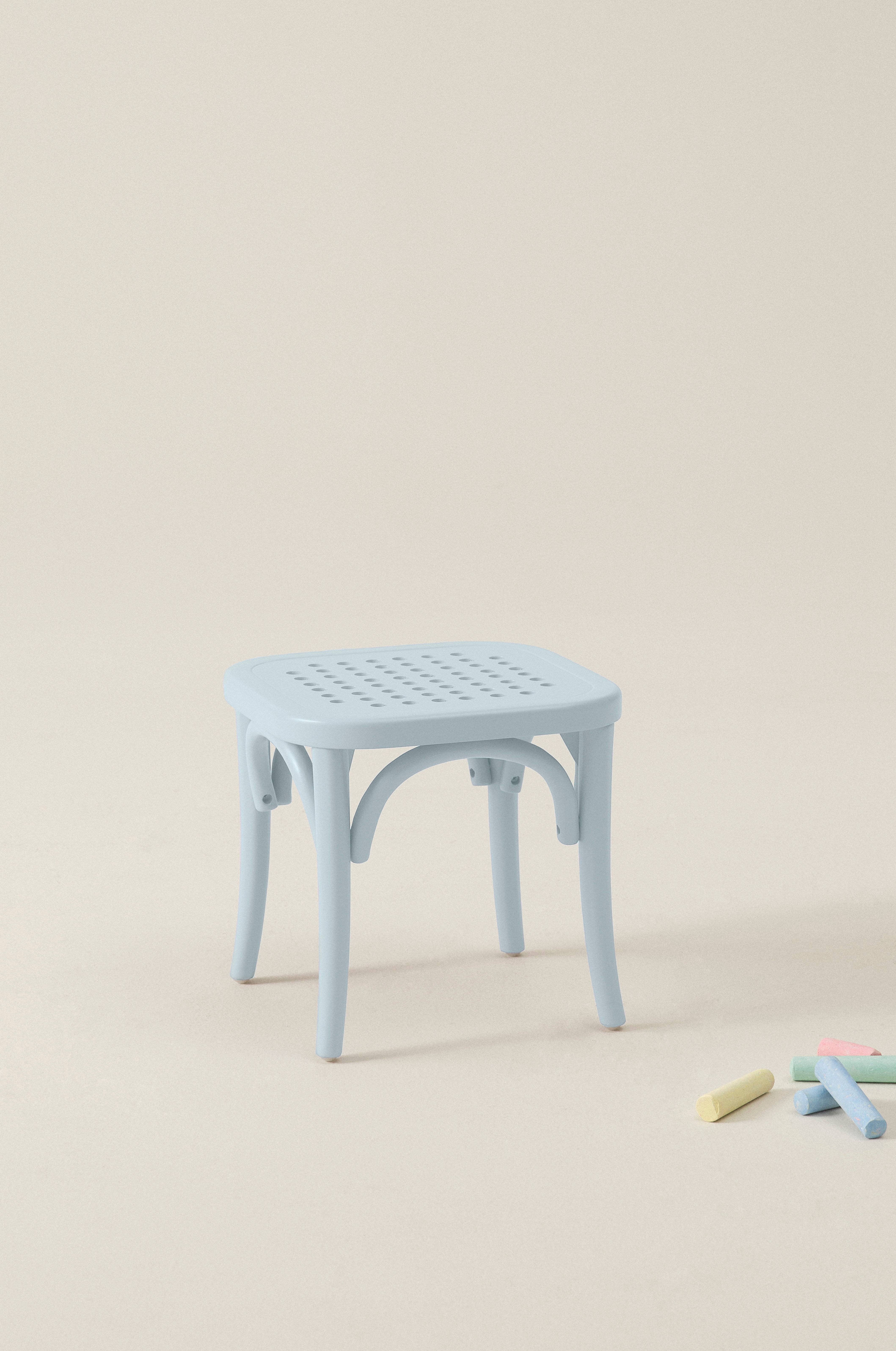Børneskammel i lille format, udført i FSC-mærket bøg malet med vandbaseret maling i lækre nuancer. Sædet er af plywood (ikke FSC) og har dekorative, perforerede huller. RIPPATS er inspireret af den klassiske caféstol og har de helt rigtige ingredienser, dvs. bløde, runde former og netop denne model er blevet opdateret med et specielt sæde. Skamlen er lavet i massivt træ med sæde af plywood, og takket være designet giver den et let og luftigt indtryk.