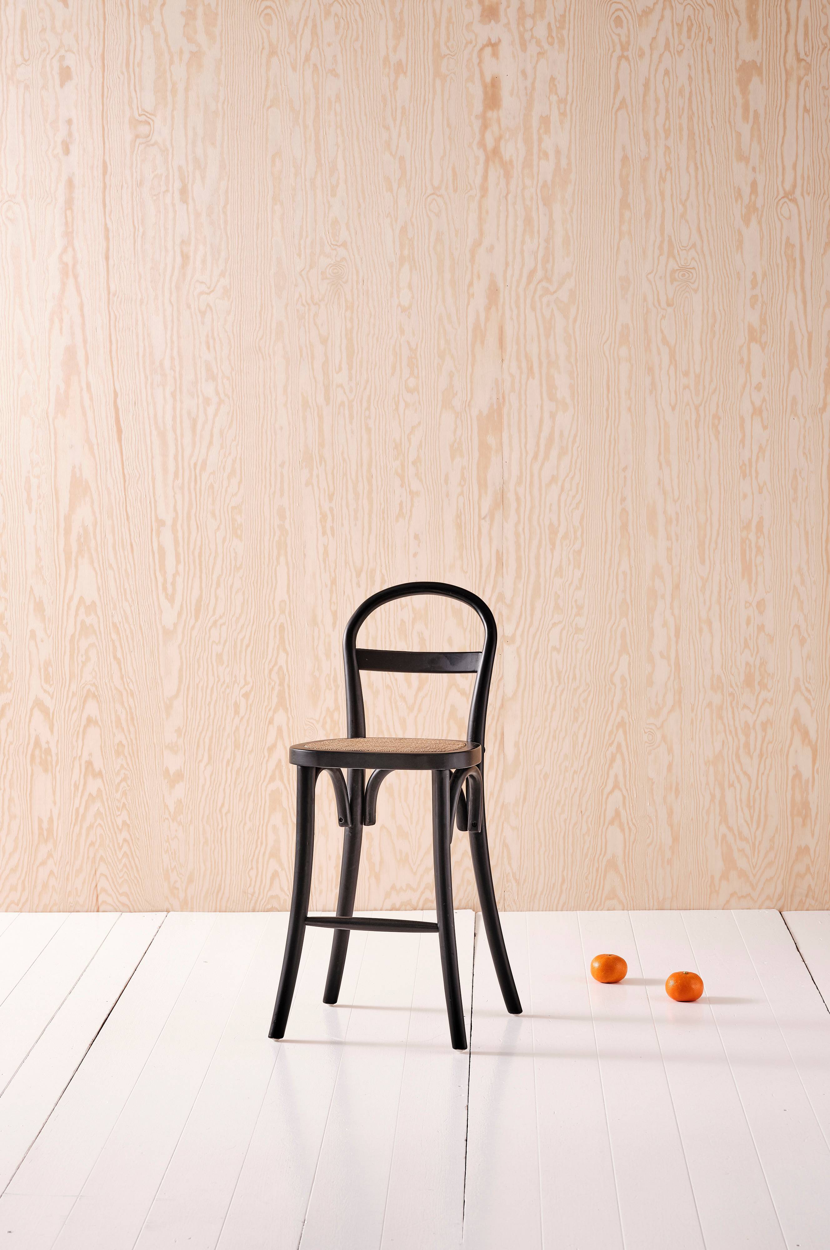 Børnestol med stel af massiv birk og sæde af rotting og træ. Klassisk caféstol til de små børn, så de kan sidde behageligt i den rette højde ved bordet. Designeren har givet stolen et let og luftigt udtryk.