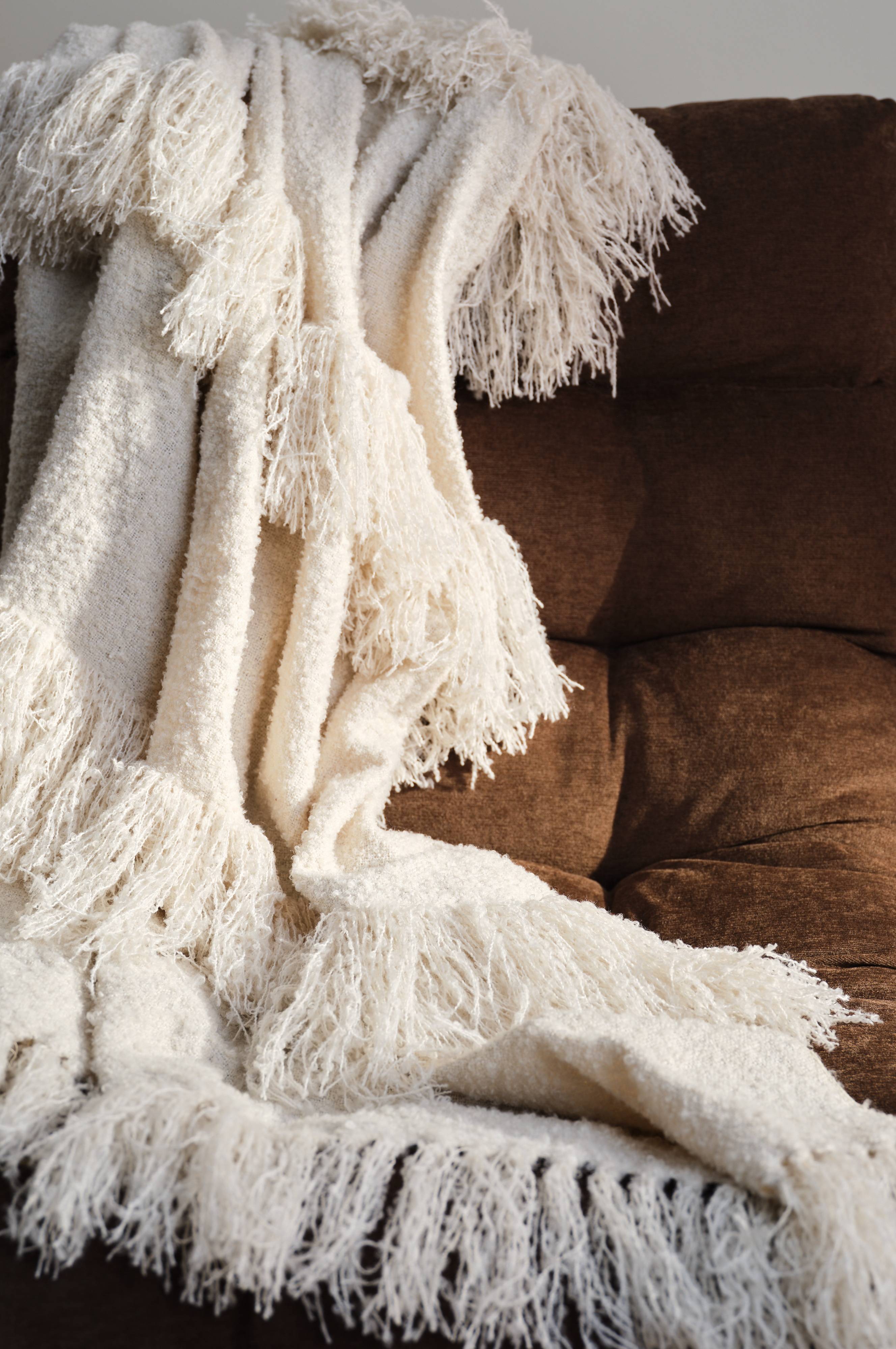 RUFUS-tæppet er en hyggelig blanding af tekstur og varme med en håndvævet polyesterkonstruktion med charmerende frynser. Hvert stykke er udformet, så det er forskelligt på grund af det anvendte garn. Disse plaider er ideelle til at forbedre æstetikken i ethvert rum og giver et lag af stil. Bemærk den dejlige variation i frynselængder og den bløde kompleksitet, der gør hvert stykke til noget særligt.
