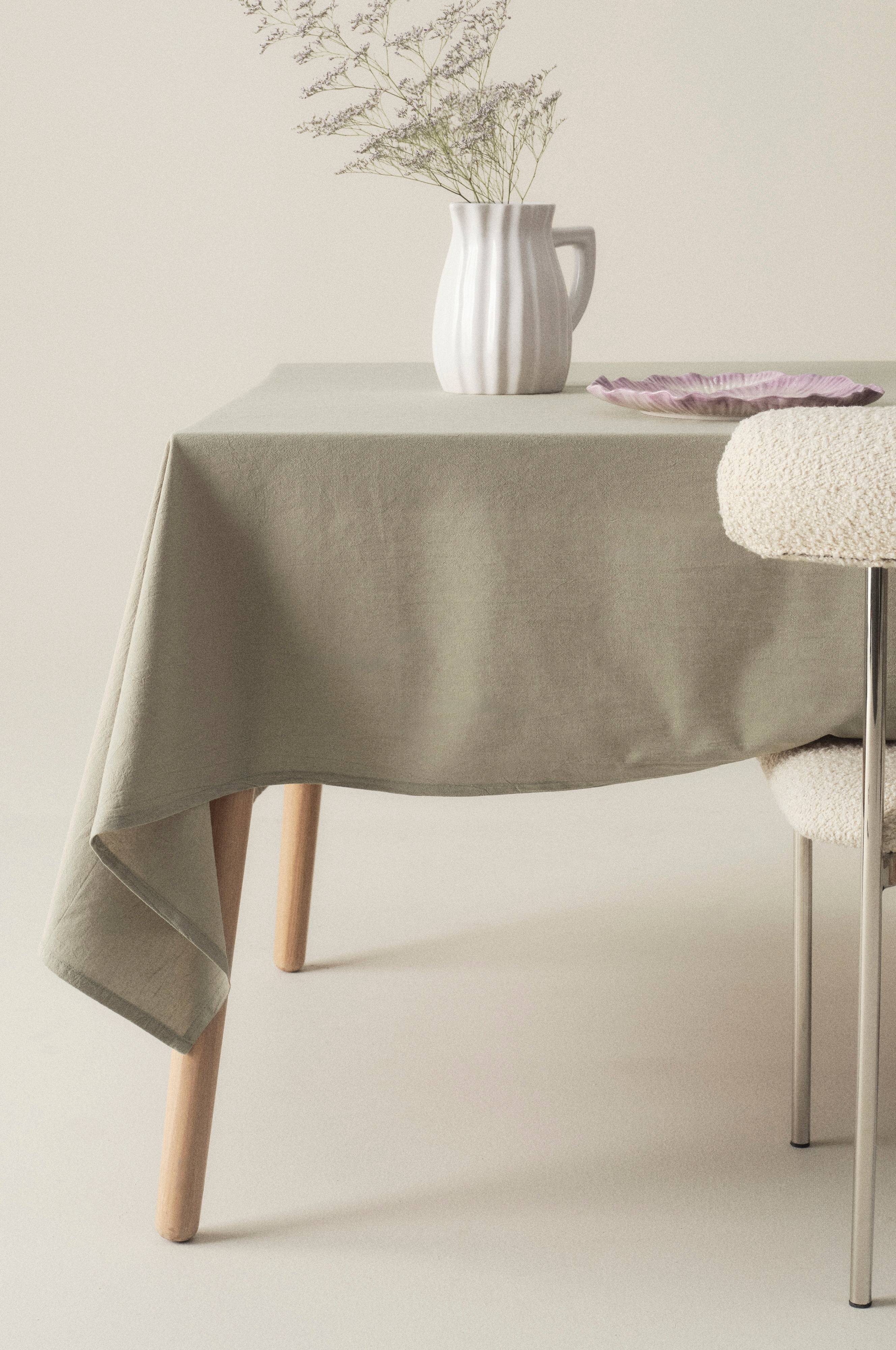 Ensfarvet dug af smidig bomuld i bløde, afdæmpede nuancer. En ensfarvet dug giver stor frihed, når det kommer til borddækningen, og du kan vælge mønstret porcelæn og mikse forskellige mønstre og farver hvis du vil.