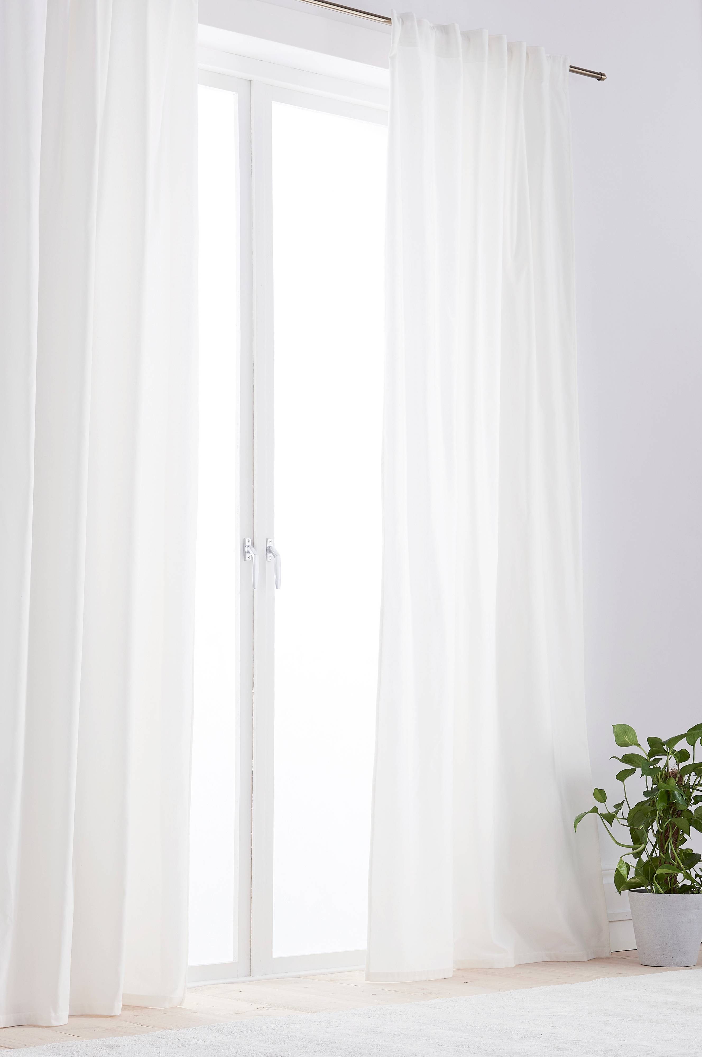 2-pak gardinlængde i ensfarvet bomuldsvelour med påsyet multifunktionsbånd. Multifunktionelt gardin der giver dig fire forskellige muligheder for ophængning. På den måde kan gardinet passe til netop dit hjem og din stil. Kan hænges op med skjulte stropper eller med fingerhægter til foldebånd.