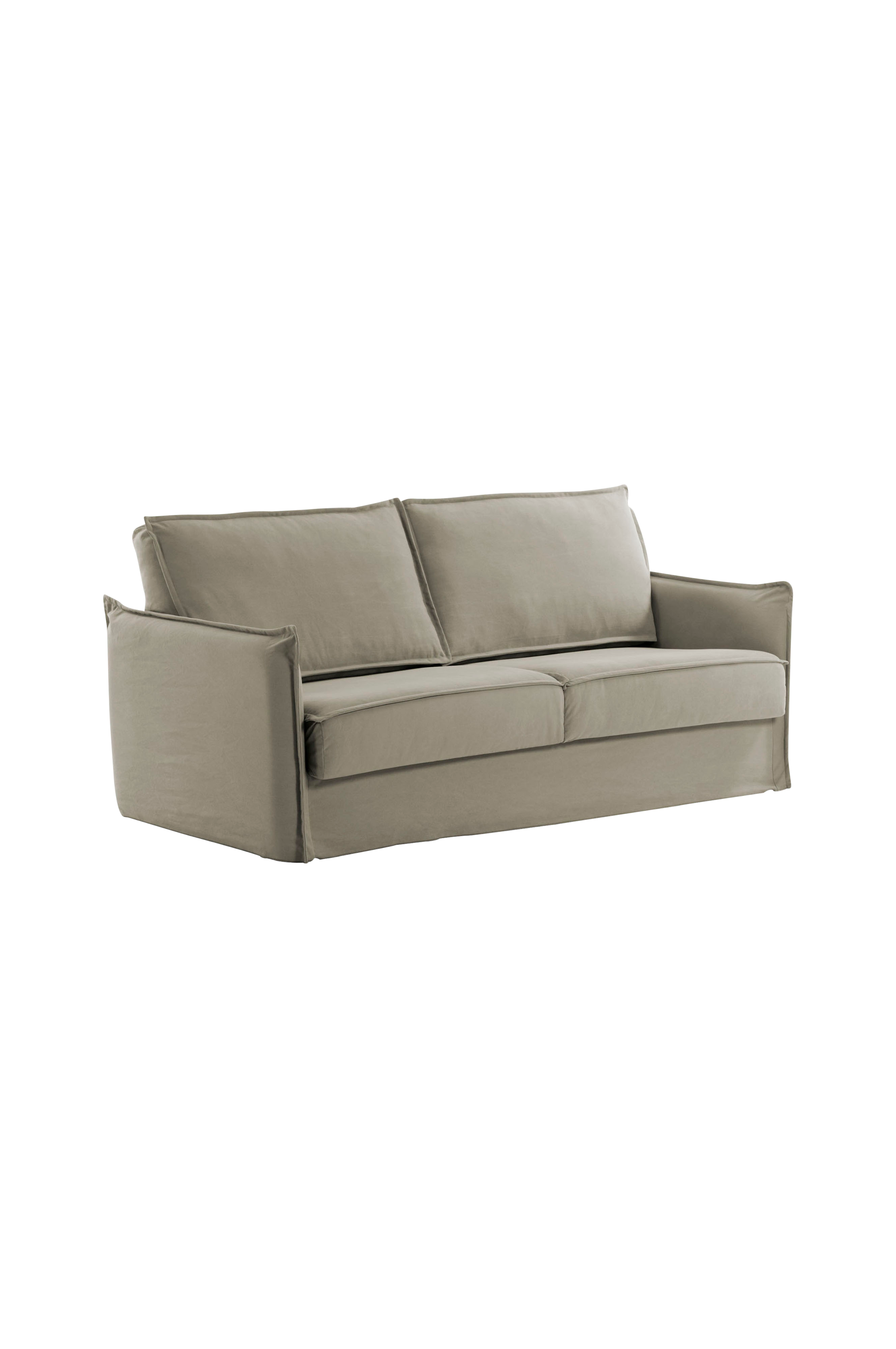 Praktisk sovesofa med en medfølgende 160 cm bred PU-madras. Sengemål 160x220 cm. Sofaen er miljøvenligt fremstillet af 100% naturlig bomuld.