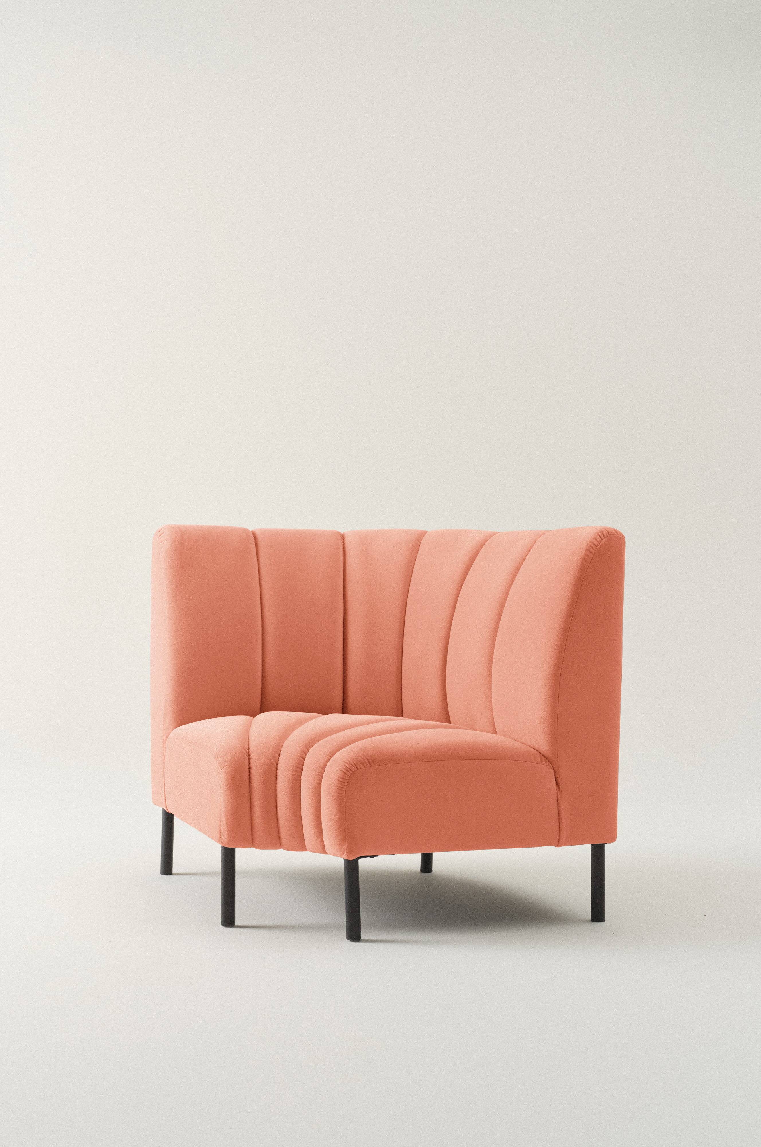 Det flotte velourbetræk er lavet af genbrugspolyester med en slidstyrke på 40.000 Martindale. Stellet er af plywood og fyrretræ, alt træ er FSC-certificeret. Sofaen har zigzag-fjedre kombineret med skum og polyesterpolstring for at gøre den ekstra behagelig at sidde på. De runde ben er lavet af metal med sort pulverlakering. Køber du flere moduler bygges de sammen med de medfølgende metalbeslag. Betrækket er ikke aftageligt. Skal færdigsamles. Samlevejledning medfølger.