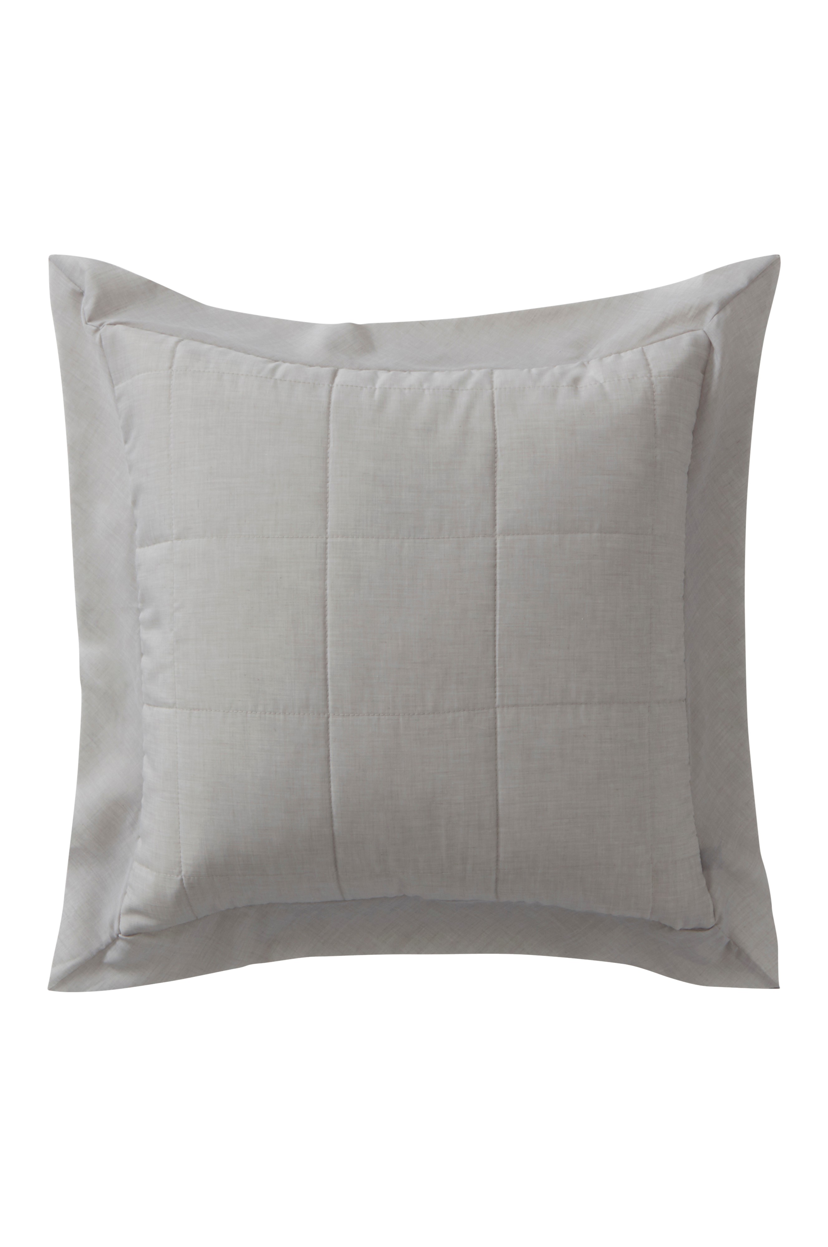 1-pak pudebetræk af bomuld og polyester og har garnfarbet udseende som giver et blødt og hjemligt udtryk. Pudebetrækket er ternquiltet med smidigt fyld af polyester. En tynd, rå kant runt om giver en særlig indramning. Lynlås i kanten forneden.