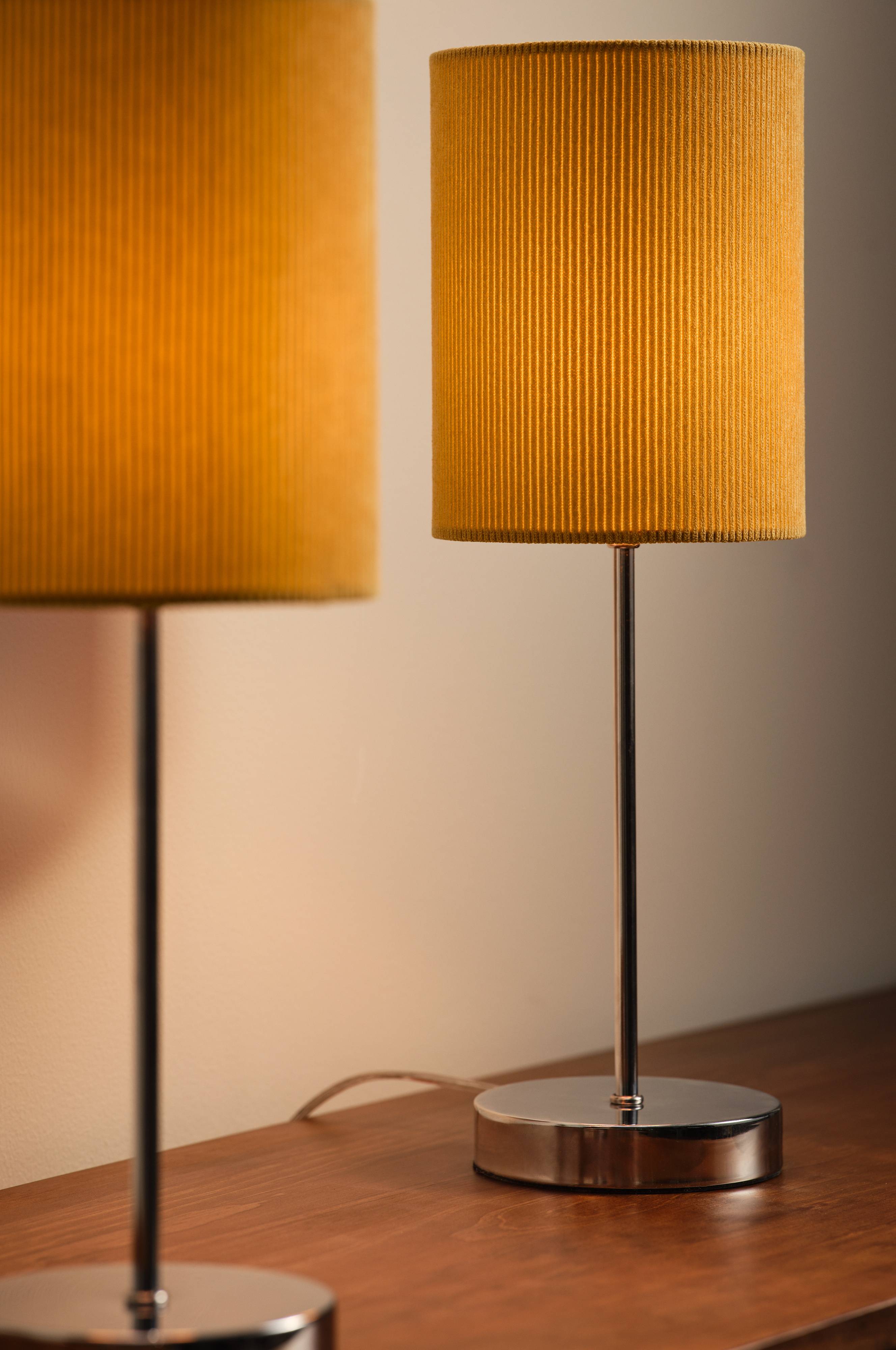 SETH-bordlampen skaber retrostemning i ethvert rum med sin slanke kromfod og markante lampeskærm i fløjl. Disse bordlamper sælges i en pakke med to stk. og er perfekte til at give din indretning et strejf af nostalgi. SETH-lamperne er ideelle til natborde eller stuen og tilbyder både stil og komfort i et kompakt design, der nemt forbedrer dit hjems æstetik.