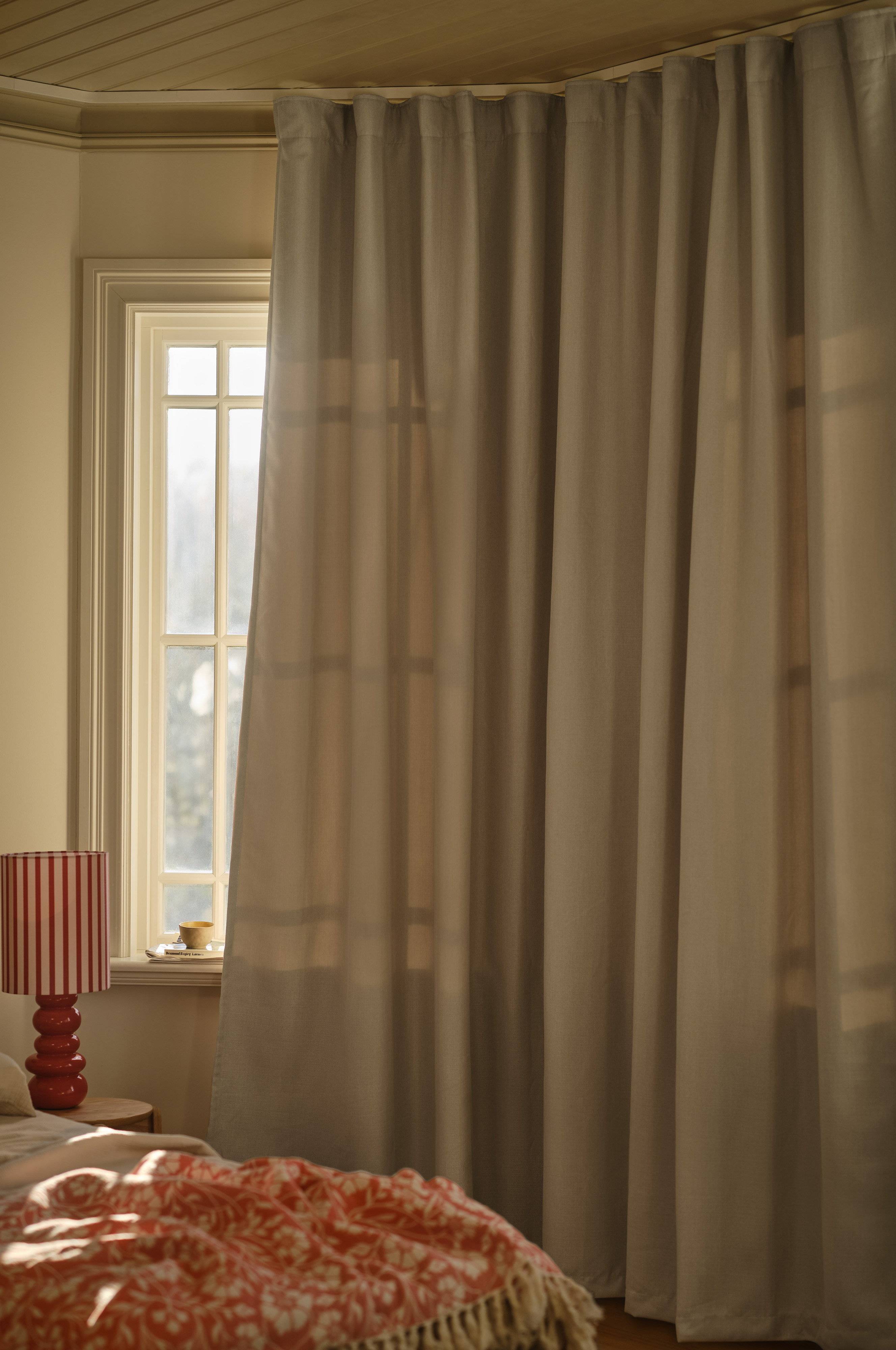 SHADOW mørklægningsgardin forvandler din stue med sit ekstra brede design, der passer til store vinduer. Gardinet er syet i to lag, hvilket giver det et markant, tungt fald, samtidig med at det effektivt lukker lyset ude. Den hørinspirerede tekstur giver et naturligt, tidløst look, og materialet er let at vedligeholde. Gardinet er perfekt til at skabe en hyggelig og privat atmosfære og er både funktionelt og stilfuldt, hvilket gør det til en god tilføjelse til ethvert moderne hjem. Pakken indeholder en længde.