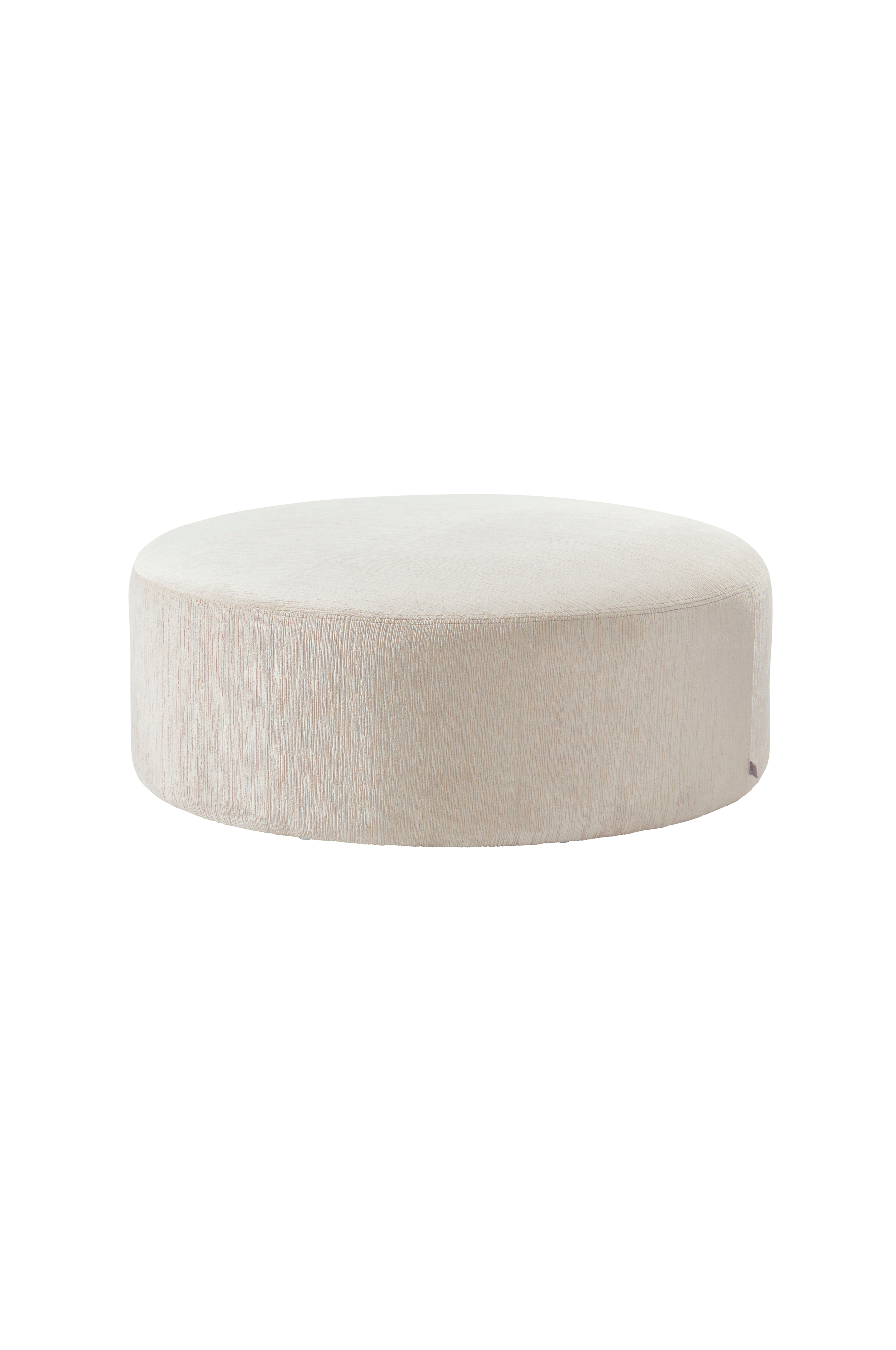 Rund siddepuf med fast velourbetræk, dobbeltstukne sømme og træramme. Kombinationen af zigzagfjedre, elastisk kerne og skumgummifyld giver maksimal siddekomfort. Siddepuffen er et sjovt møbel med mange muligheder. Ekstra siddeplads eller måske et sidebord? Og velour er en trend, der holder. Denne er ekstra fin med uregelmæssigt stribet struktur og fin glans.