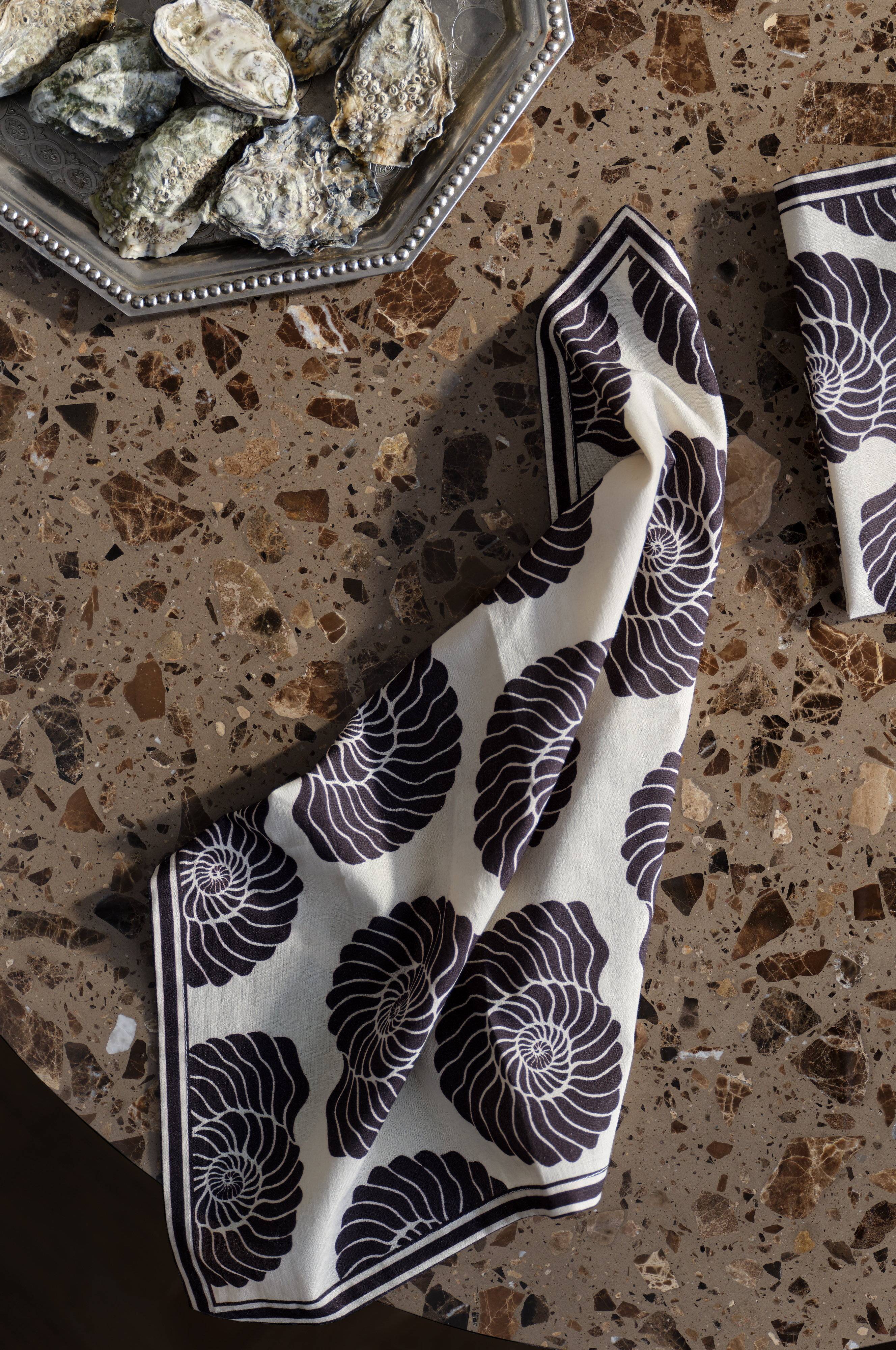 Serviettsættet SHELLY har digitaltrykte muslingeskaller, som giver din spiseoplevelse et strejf af kystcharme. Dette sæt med to servietter er fremstillet af bomuld og er perfekt til at tilføje et strejf af havet til din bordindretning. Passer smukt sammen med SHELLY-dugen for et koordineret look.
