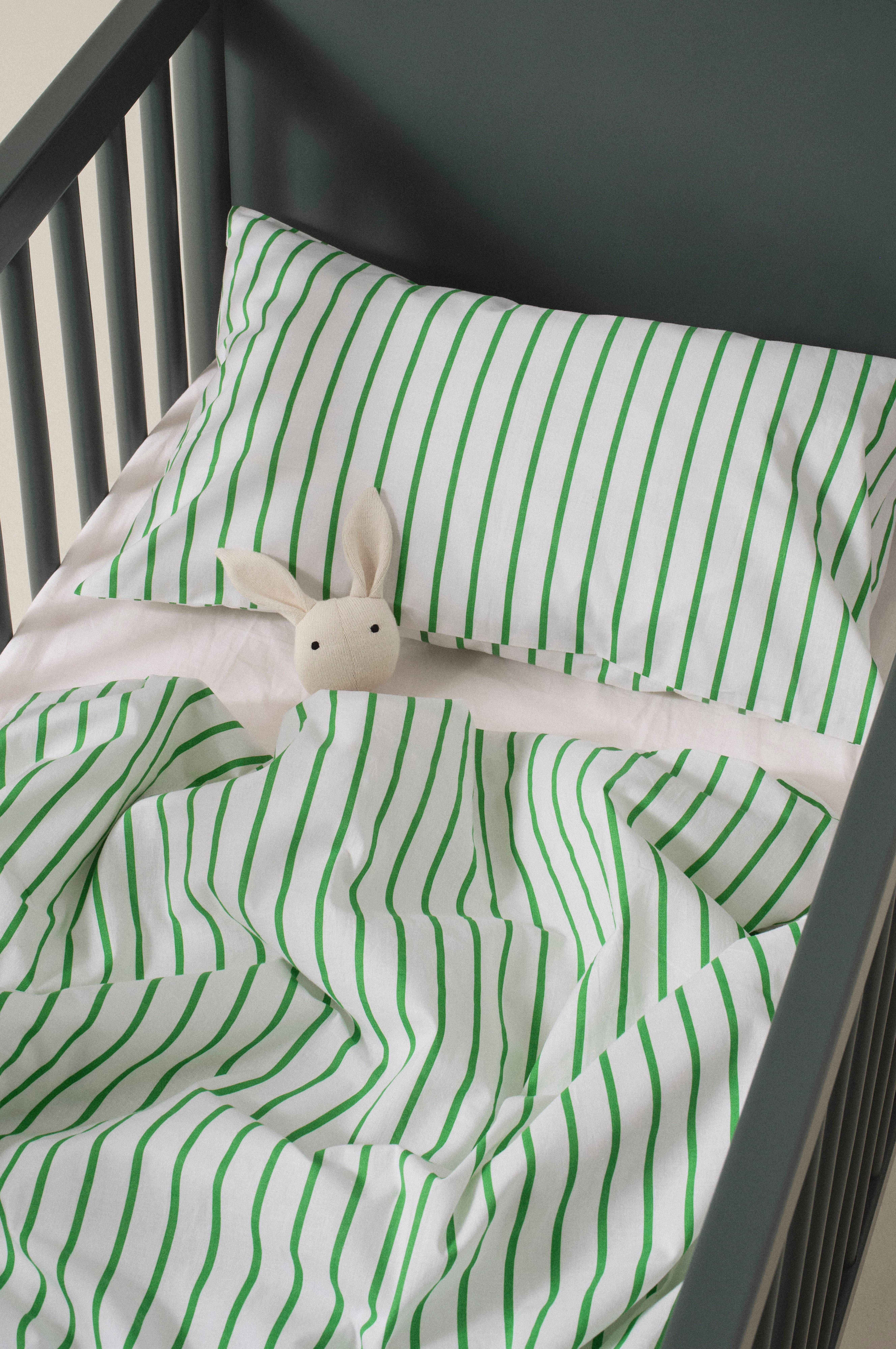 SIMA dynebetræk af økologisk bomuld, der er skræddersyet til at passe perfekt til din tremmeseng og giver et blødt touch til din lille søvns afslappede søvn. Trykte striber i sprøde farver.
