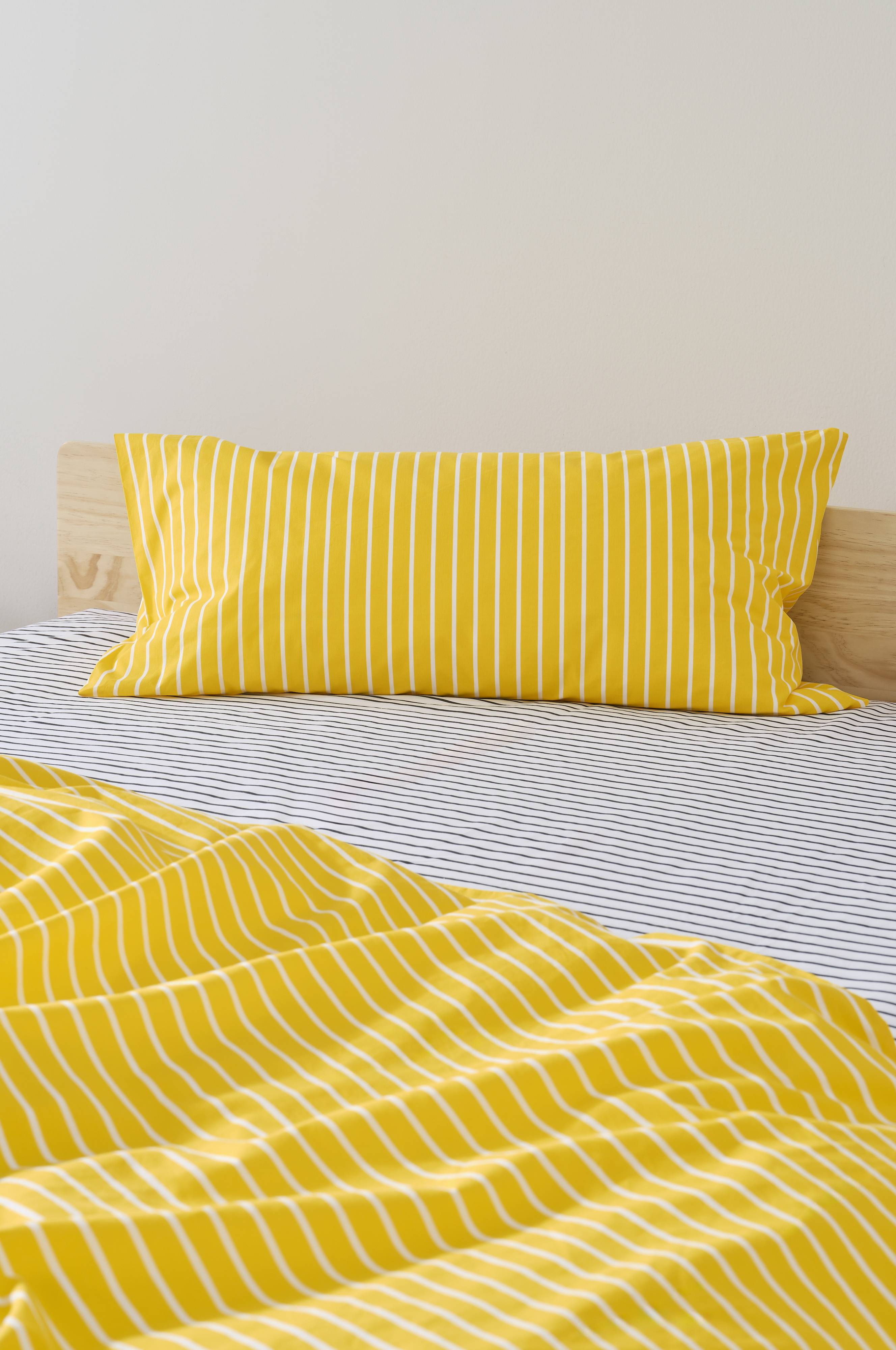 SIMA pudebetræk lavet af økologisk bomuld. Trykte striber i sprøde farver. Forvandl dit soveværelse til et afslappende sted.