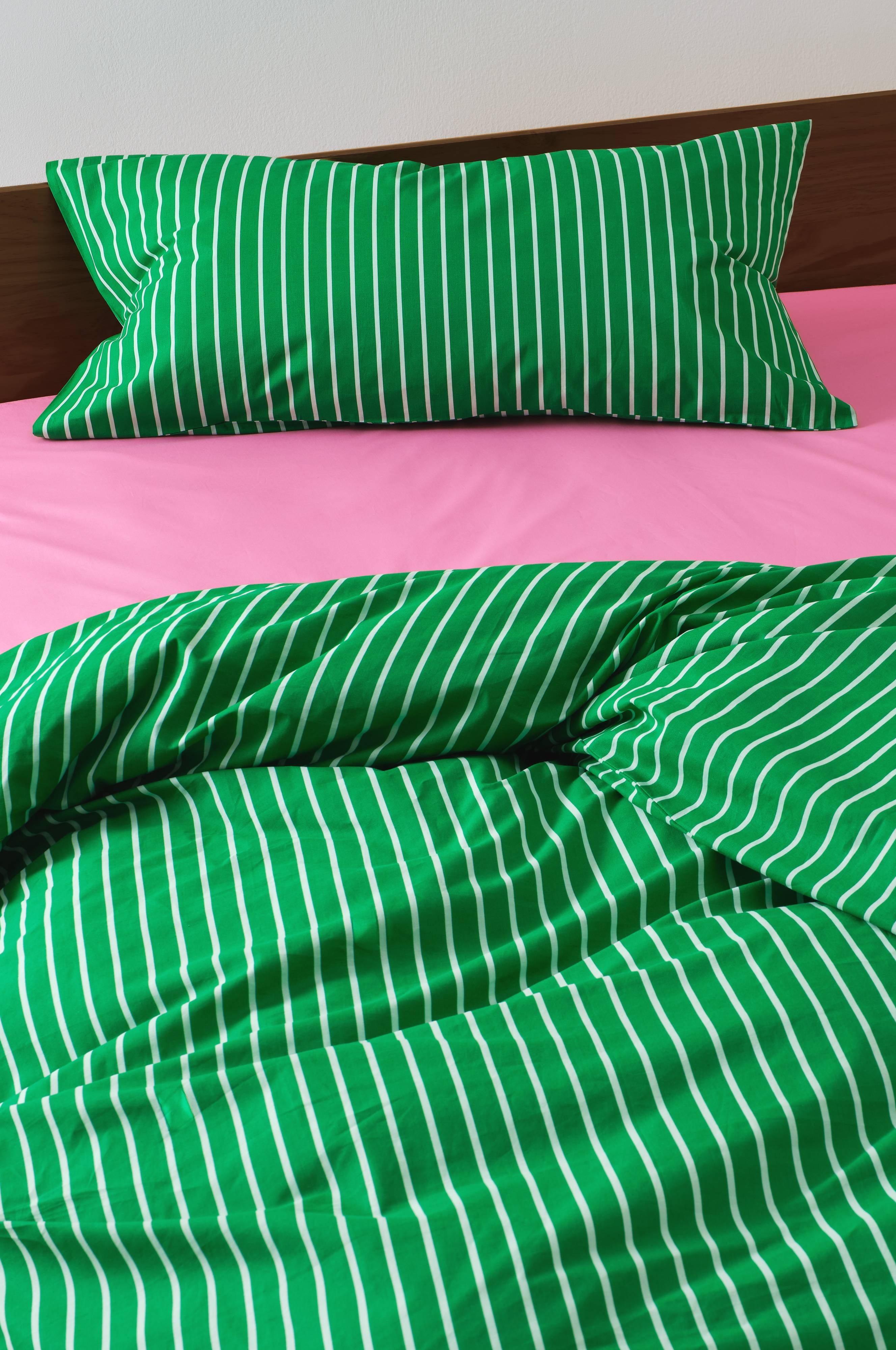 SIMA pudebetræk lavet af økologisk bomuld. Trykte striber i sprøde farver. Forvandl dit soveværelse til et afslappende sted.