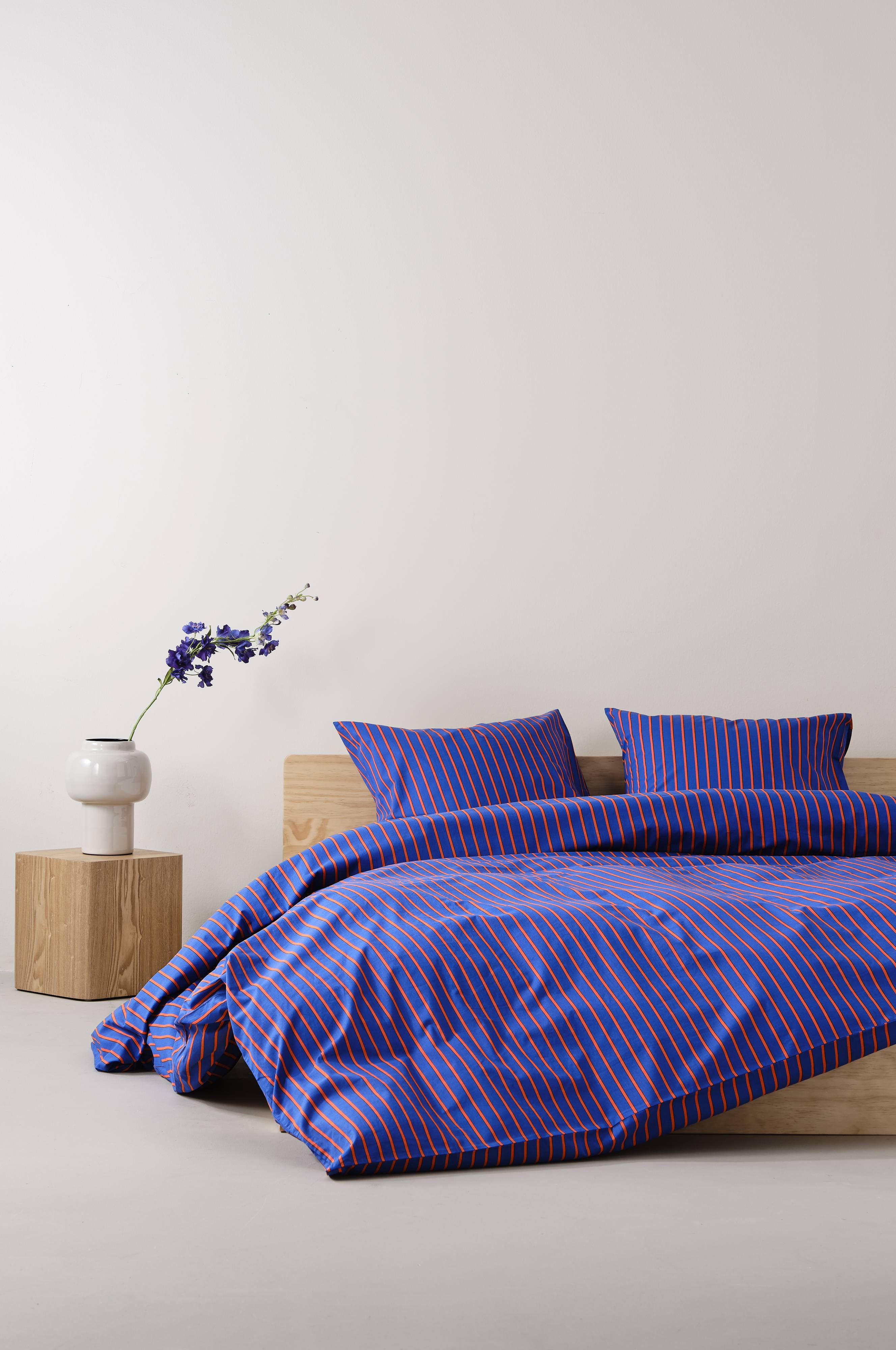 SIMA sengesæt lavet af økologisk bomuld. En luksuriøs komfort med ekstra bredt dynebetræk. Trykte striber i sprøde farver. Praktiske håndhuller til dynen. Forvandl dit soveværelse til et afslappende sted.