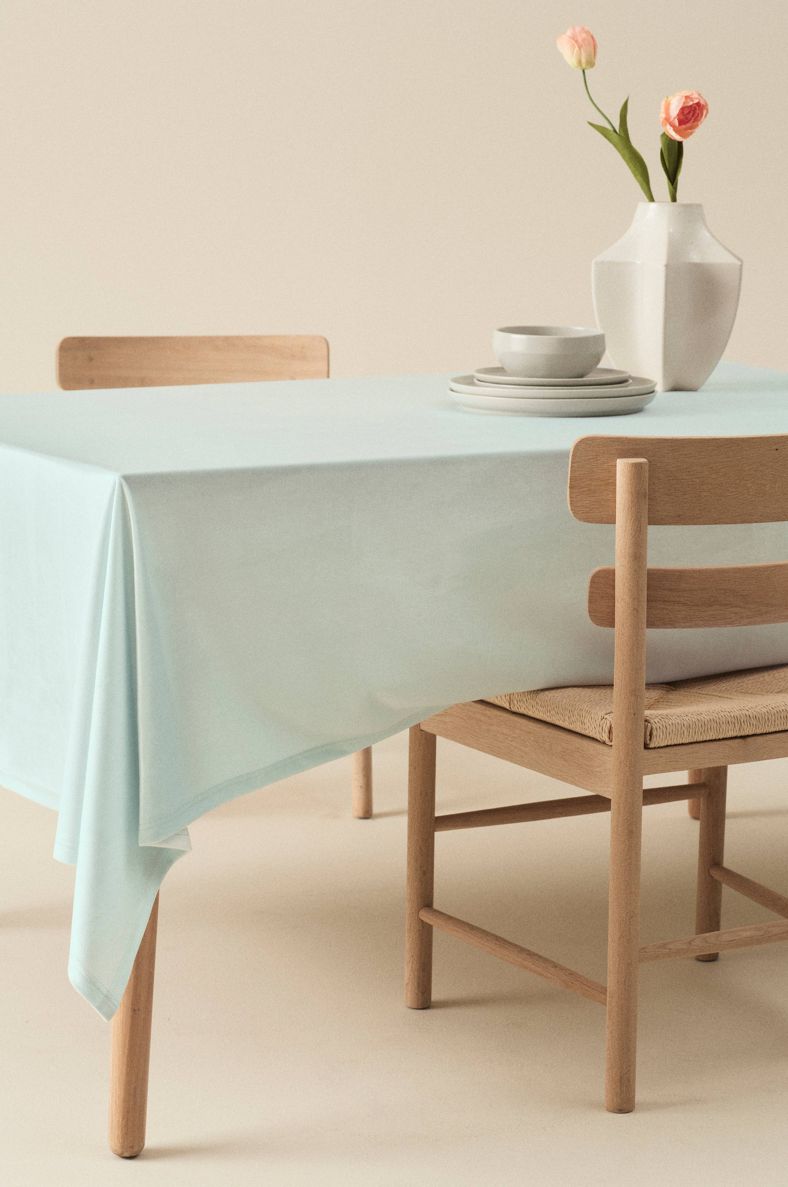 Dug i elegant velour af polyester. Velourstoffet skinner smukt, farvenuancen opleves forskelligt afhængigt af, hvordan lyset falder. Dugen har dobbeltstikning rundt om og det føles luksuriøst og fint at dække op med velour.
