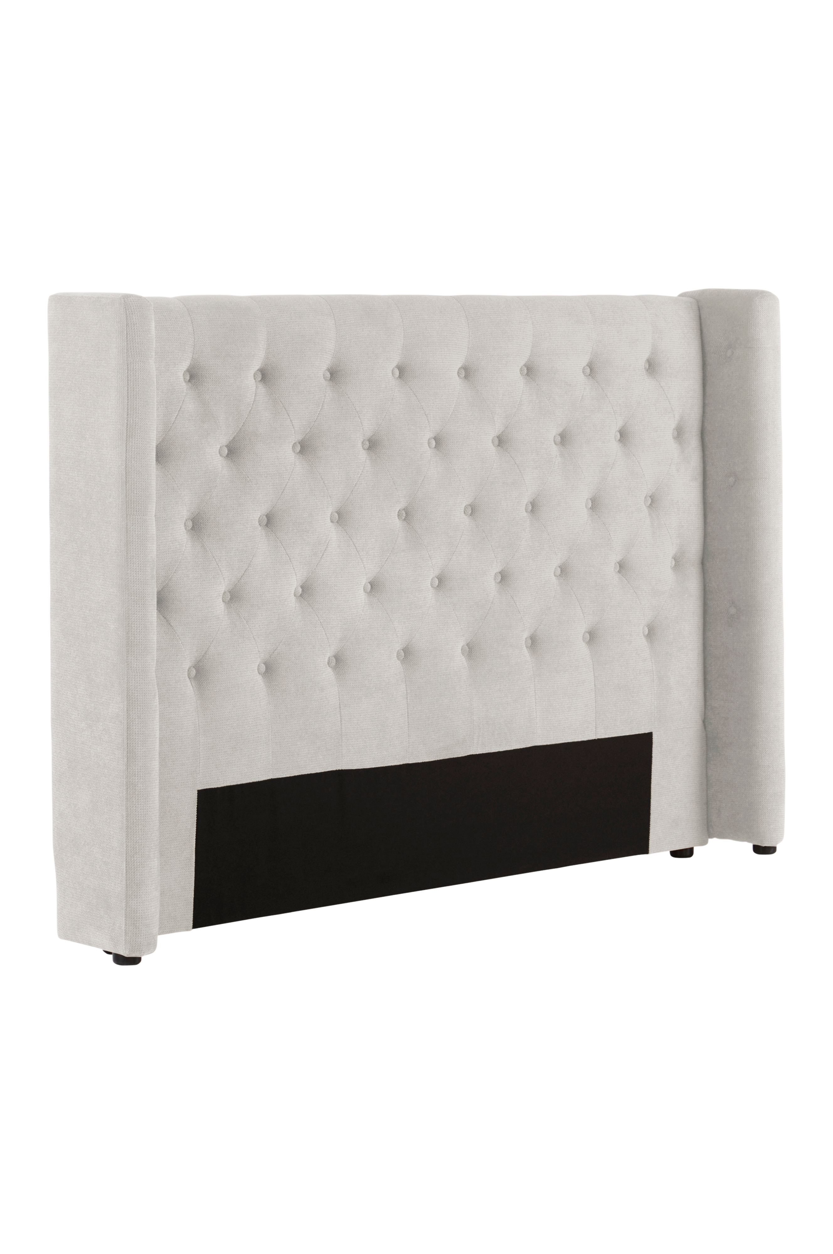 Fritstående sengegavl beklædt med et ensfarvet stof, der er blødt og behageligt. Sengegavlen har vinger i siderne, og de dybthæftede betrukne knapper giver et luksuriøst udtryk. Stellet er af plywood og massivt træ, som er polstret med skumgummifyld. Vægbeslag medfølger, en skinne på bagsiden gør det nemt at hænge gavlen op, hvis du ønsker det. Du kan også klemme sengegavlen fast mellem sengen og væggen. Nogen montering kræves. Samlevejledning medfølger.