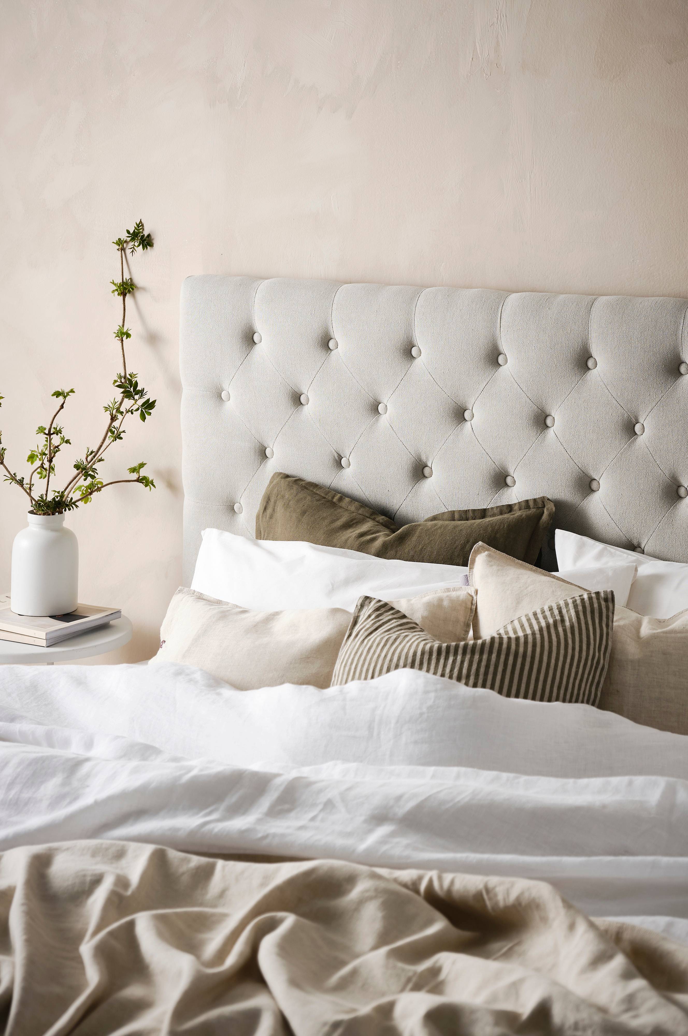 Skab hotellook i soveværelset med en indhæftet sengegavl i fineste hør.