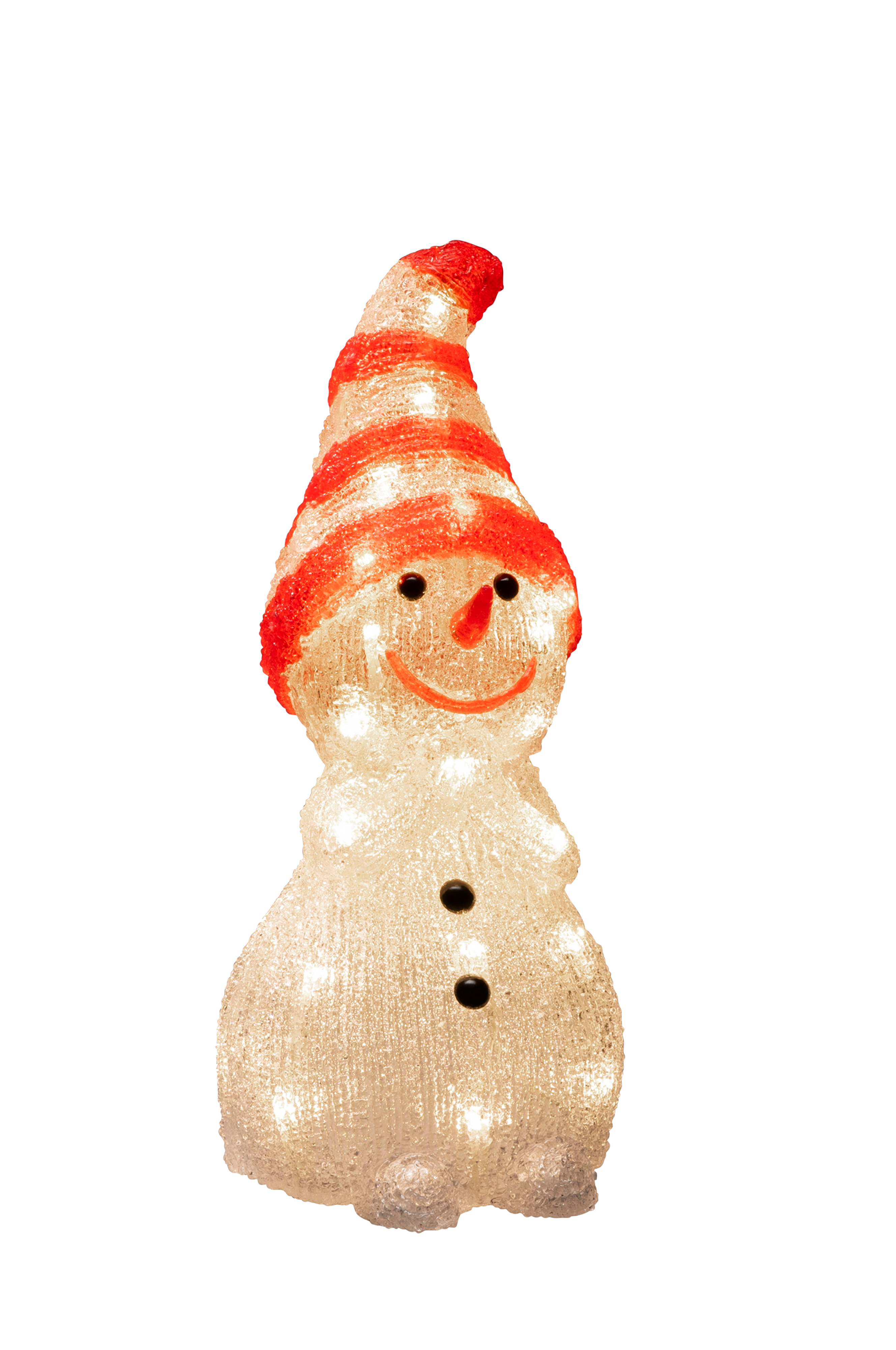 Snemand i akryl med 32 LED-lys som er tilpasset både indendørs- og udendørs brug. Med 24 V transformator og tilslutningsledning på 5 meter. Højde 32 cm.